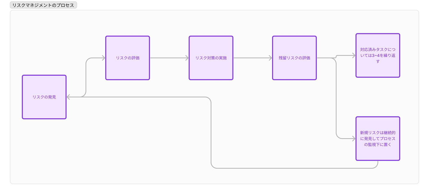 5. 対応済みタスクについては3~4を繰り返す、新規リスクは継続的に発見してプロセスの監視下に置く