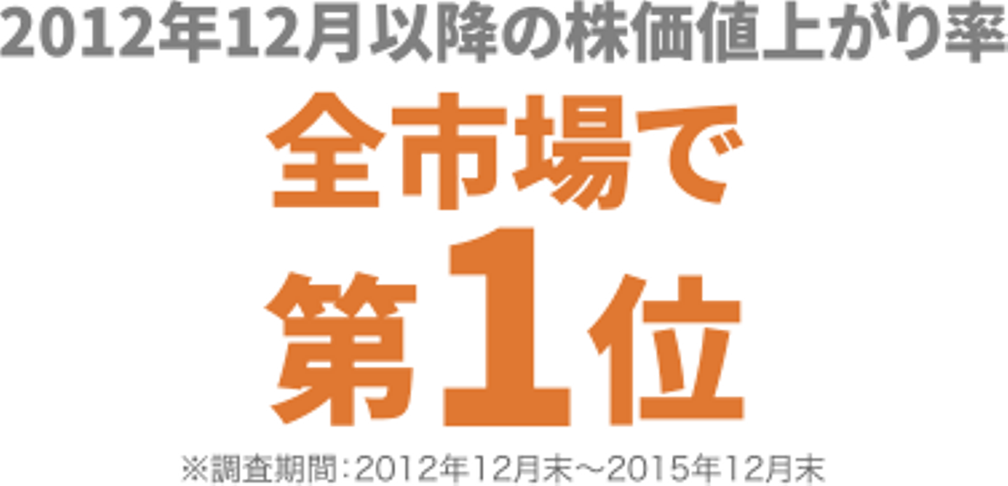 この数字は、ディップの株価値上がり率。2012年12月以降全市場での株価値上がり率が1位ということでした。