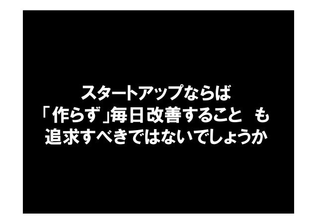 - 35. スタートアップならば 「作らず」毎日改善すること も 追求すべきではないでしょうか