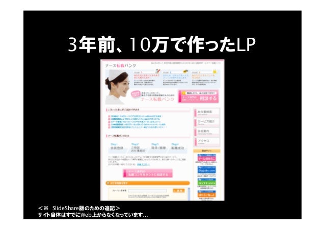 - 69. 3年前、10万で作ったLP <※ SlideShare版のための追記> サイト自体はすでにWeb上からなくなっています…
