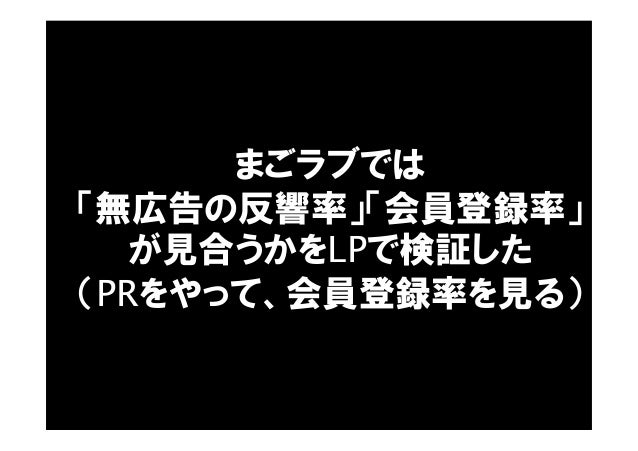 - 74. まごラブでは 「無広告の反響率」「会員登録率」 が見合うかをLPで検証した (PRをやって、会員登録率を見る)