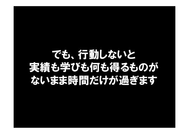 - 87. でも、行動しないと 実績も学びも何も得るものが ないまま時間だけが過ぎます