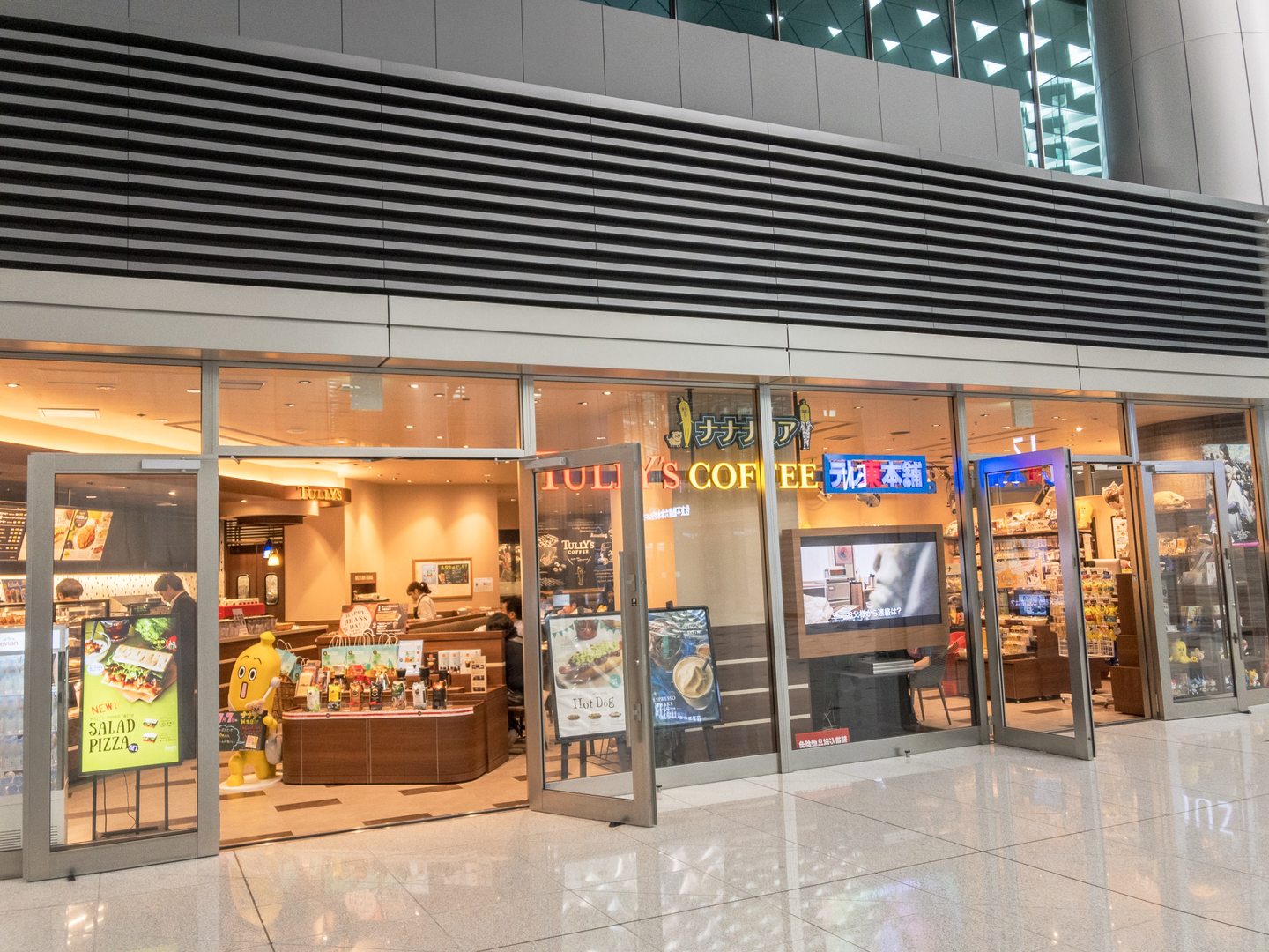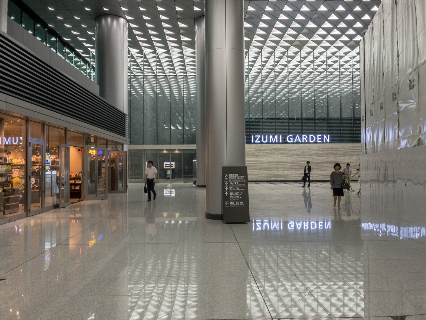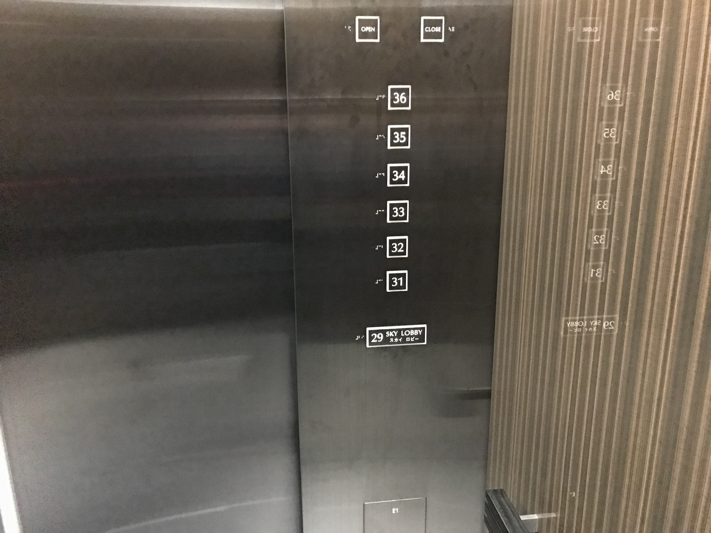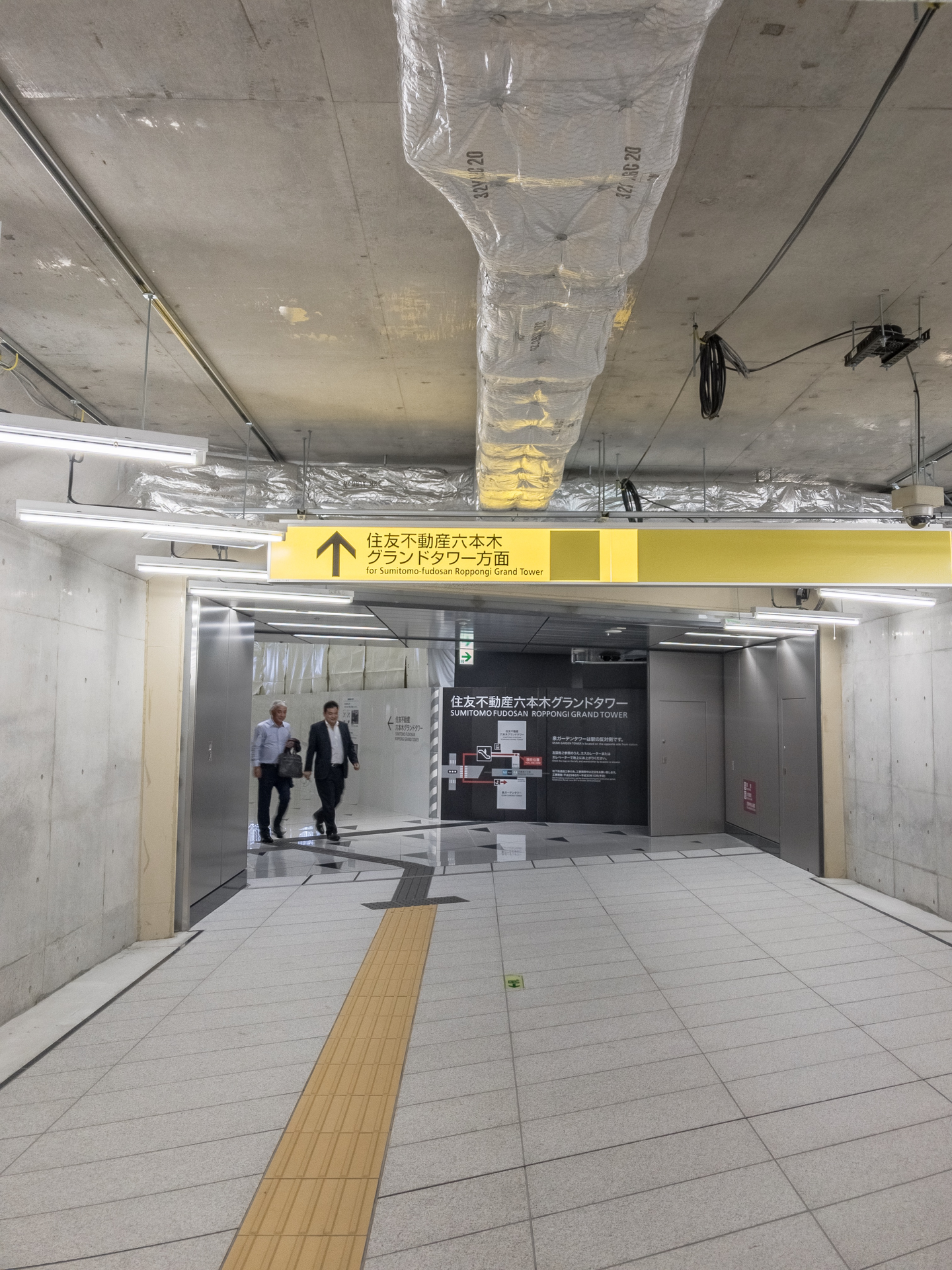 でかいのが4つ、4機?あります。このエレベーター日本1の大きさらしいですよ、人を載せるためのものだと。右にいるおねえさんとの対比で大きさはなんとなく伝わるでしょうか。