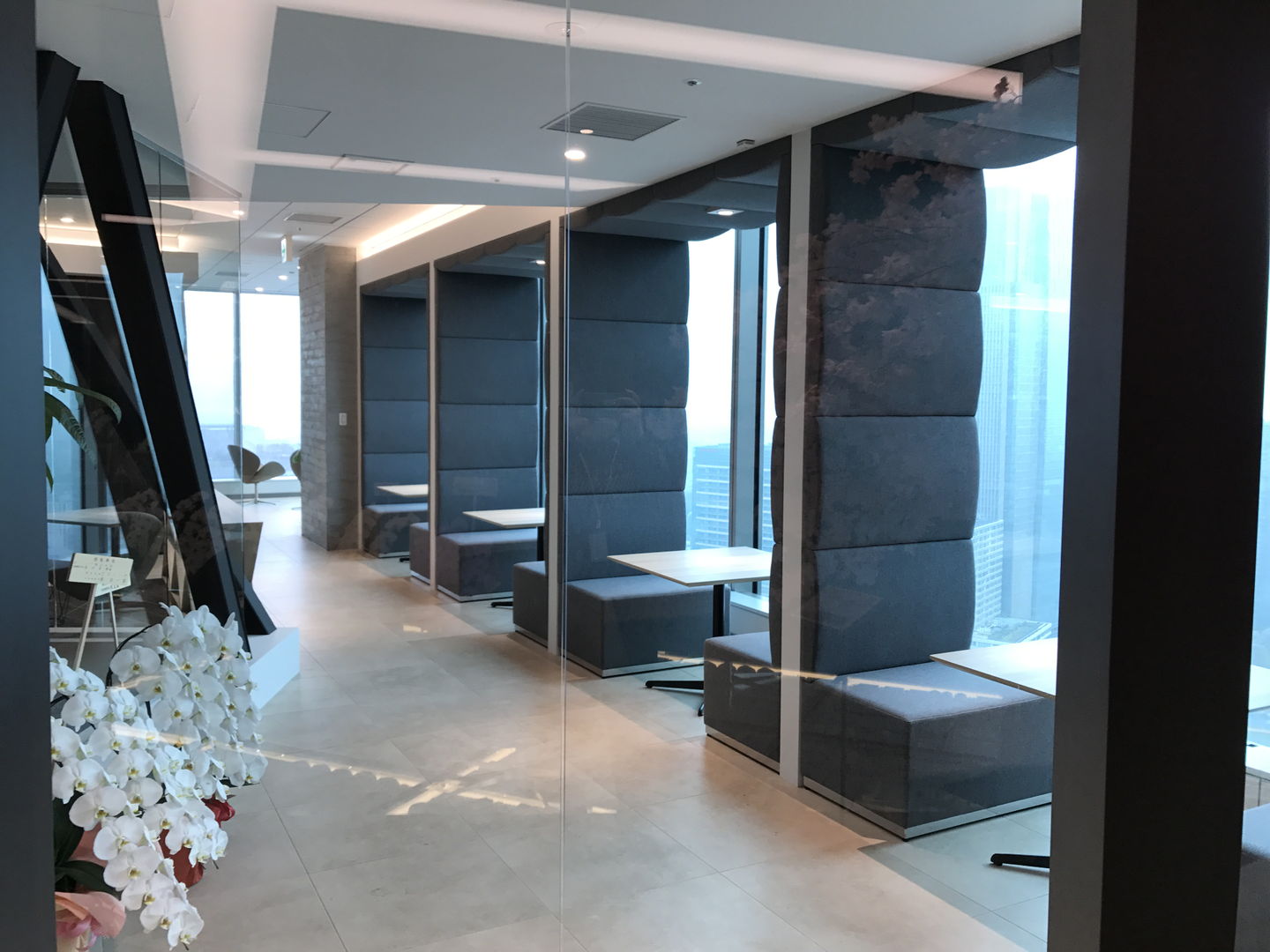 移転したばかりなのでお祝いのお花ですごいことになっています。