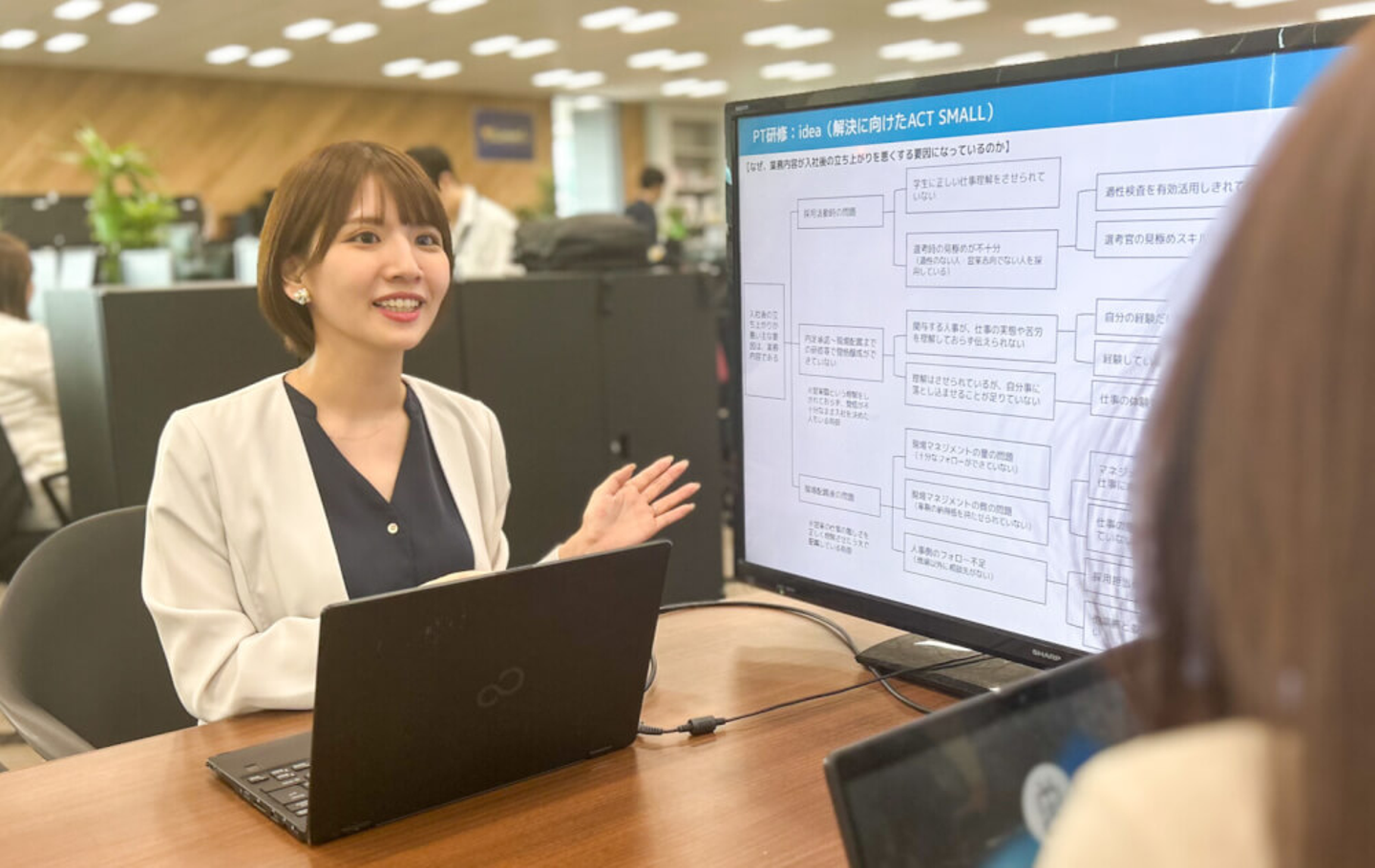 岩野:現在は社内でプロモーションターゲット研修、通称PT研修というものを受講しています。管理職として組織の課題を正しく把握し、それに対する打ち手を考え実行するという一連の流れを学ぶ研修です。次期管理職候補として上司から推薦いただき、受講することになりました。