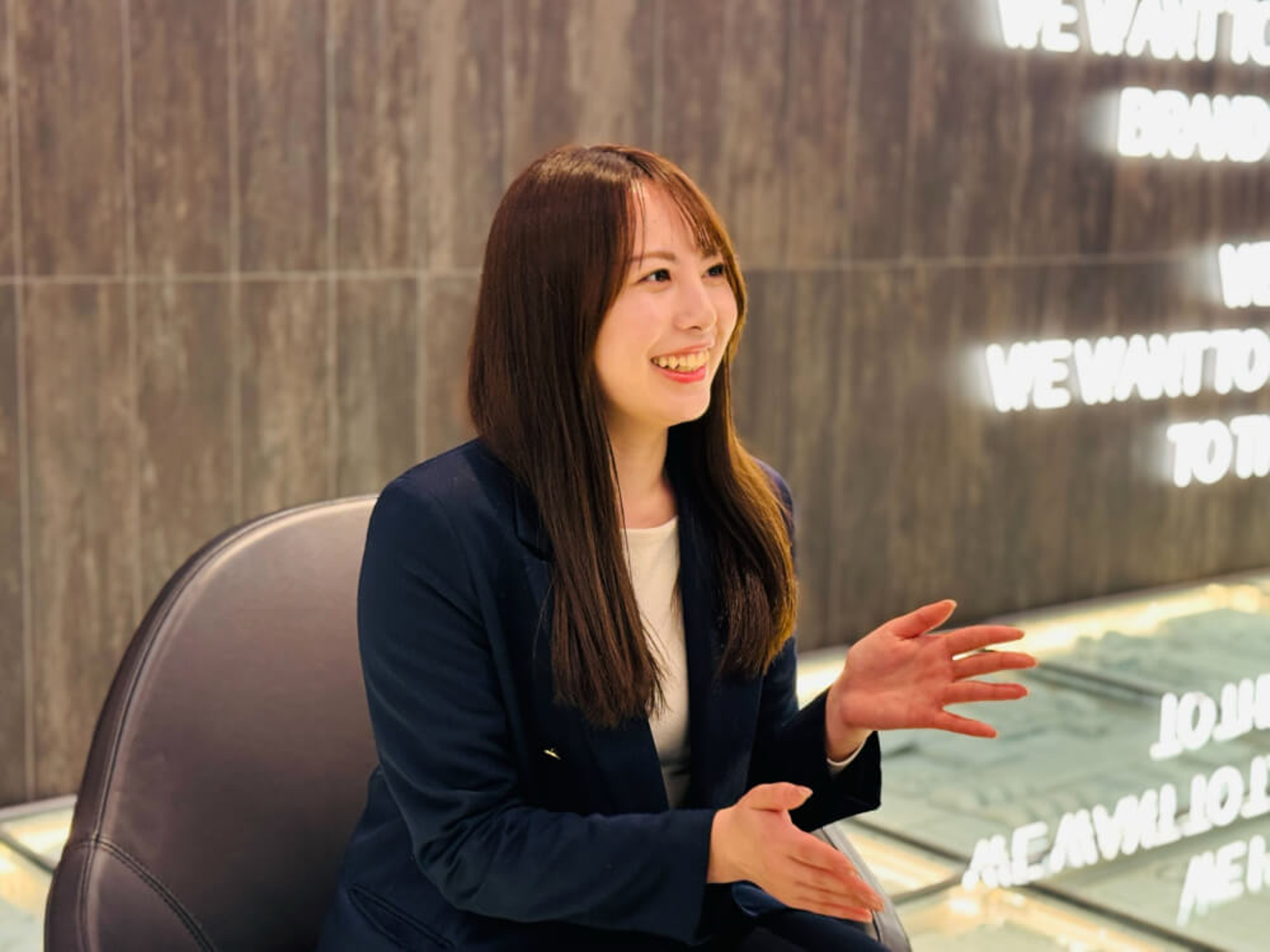 新規事業『スポットバイトル』のカスタマーサクセス(CS)を担う甲田有莉咲さん。2021年にキャリアアドバイザーとして新卒入社し、現在に至るまで人事や秘書など4回の異動を経験してきたという。今回は多種多様な部署を経験した甲田さんに、異動を通じて得た経験や気づきを伺いました。