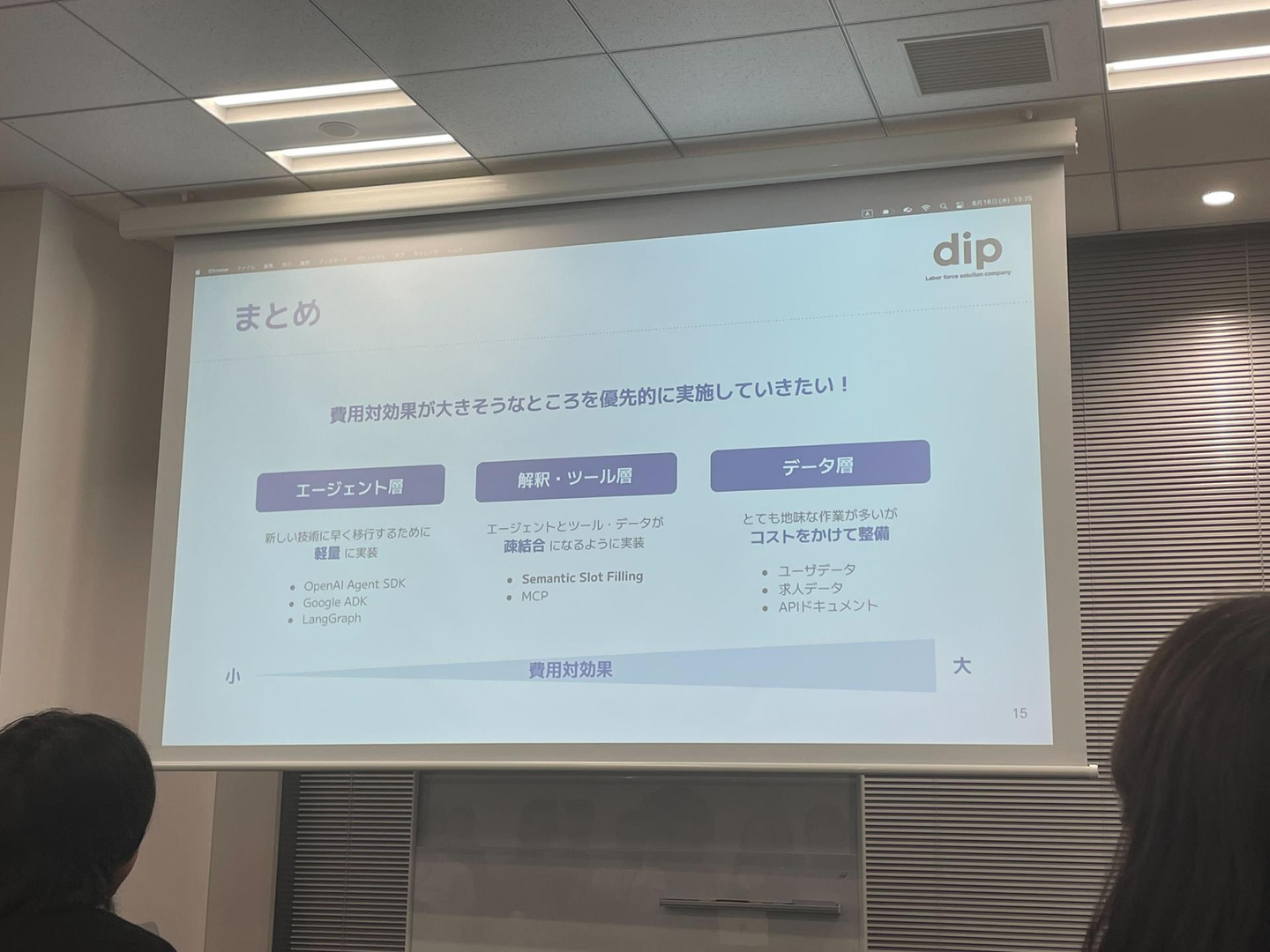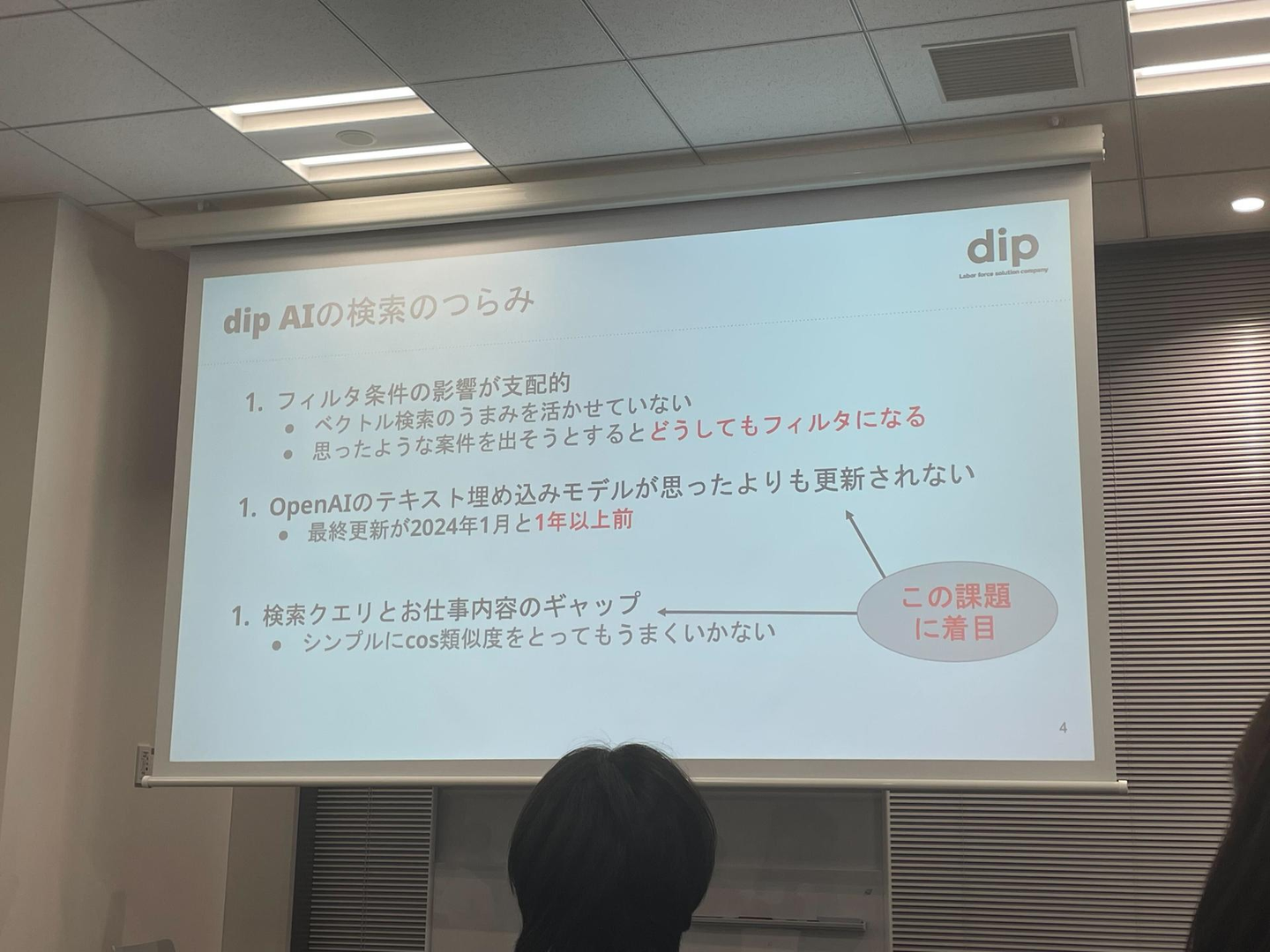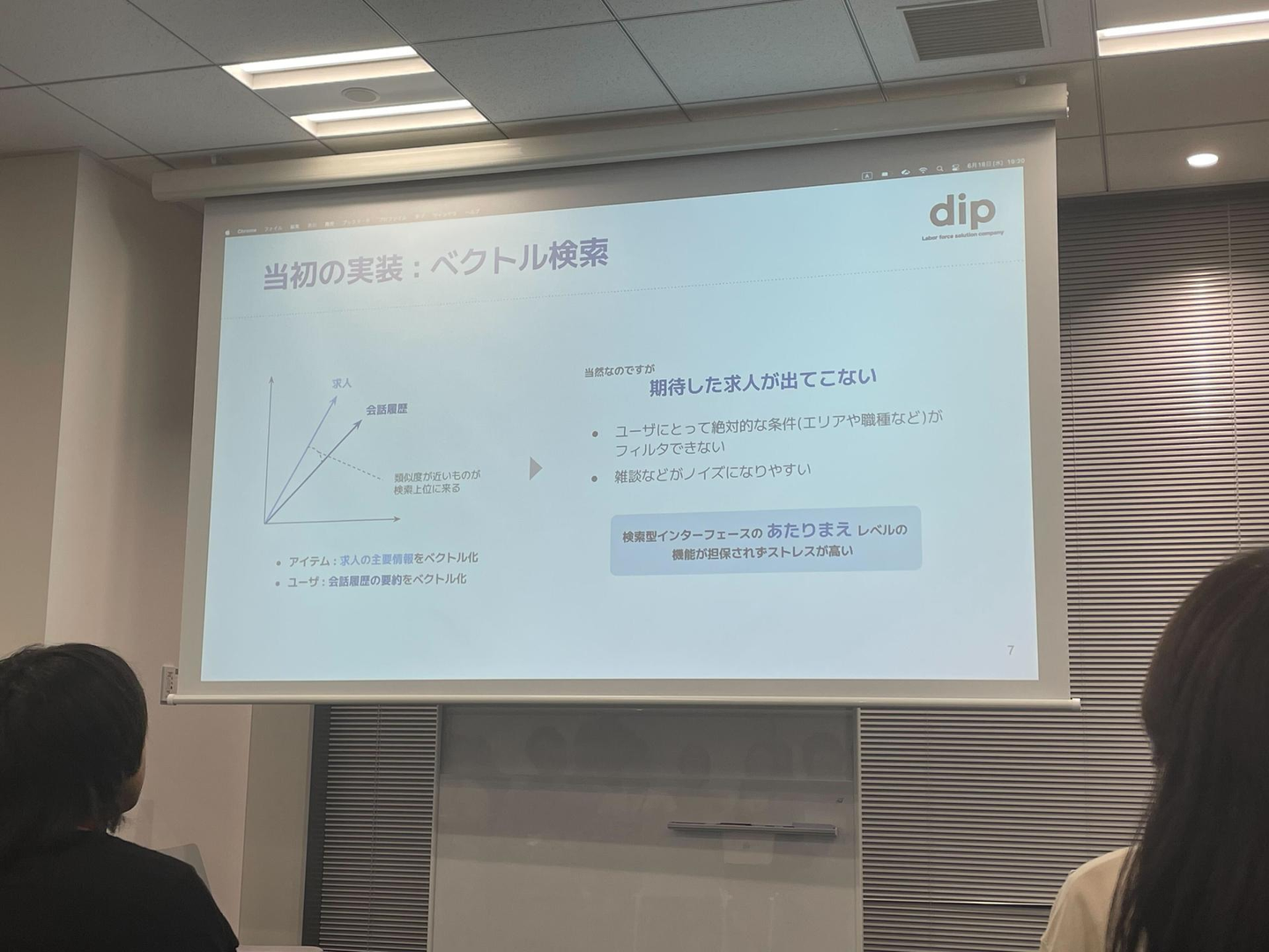 ディップ株式会社フォローhttp://www.dip-net.co.jp東京都フォローホーム私たちについてメンバーストーリー募集 ビズリーチさんと検索勉強会!!「検索」について語る会🏃🏻♀️(深い) 岩城 茉優 CTO室 DevRel on 2025/06/18 ビズリーチさんと検索エンジニア勉強会を行いました~!1人目のLTはビズリーチの加藤さん!コストもさげられて評価としても使えるってステキ✨可能性感じる…!!!小さいモデルでも賢く使い分けていけるのか🤔2人目は弊社ディップの澤田くん!(ありがとう😭✨)dip AIのお話曖昧な検索にどう対応するのか?↓ベクトル検索だと雑談がノイズになっちゃうのかー難ハイブリッド検索🤔「新宿」とか「ホールは嫌」みたいな具体的な条件はバッチリ抑えつつ、それ以外の曖昧な部分はベクトル検索で補うって、なんていいとこ取り3人目も弊社ディップの有田くん!(ありがとう😭✨)サービスの根っこを支える超大事な部分「カフェって検索したらバリスタも出てきてほしいのに、フィルターで弾かれちゃう…」とかそういうギャップがあるのか…🤔Geko、FRet…検索はこうやって賢くなっていくんだなあ同じディップでも知らないことたくさんなLTでした😭✨ここからはOST!はじめてです…!!OSTいいですね楽しい なんか他のイベントでも使えそう…技術わからなくてもいろいろな企業が集まってるからこそ「こんなところで共通点があるんだ~」って…意外と同じ悩みもあって面白い🙌非エンジニアでも楽しめる勉強会でした✨ ディップ株式会社からお誘い この話題に共感したら、メンバーと話してみませんか? 話を聞きに行きたい ビズリーチさんと検索勉強会!!「検索」について語る会🏃🏻♀️(深い) 岩城 茉優 ディップ株式会社 / CTO室 DevRel 新卒 サービス エンジニア 勉強会 5 いいね! シェア 5 いいね!
