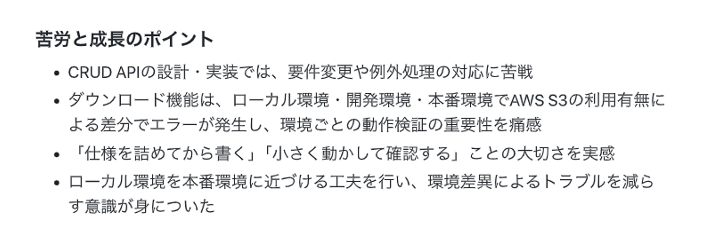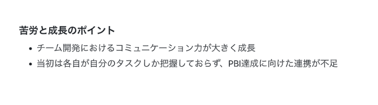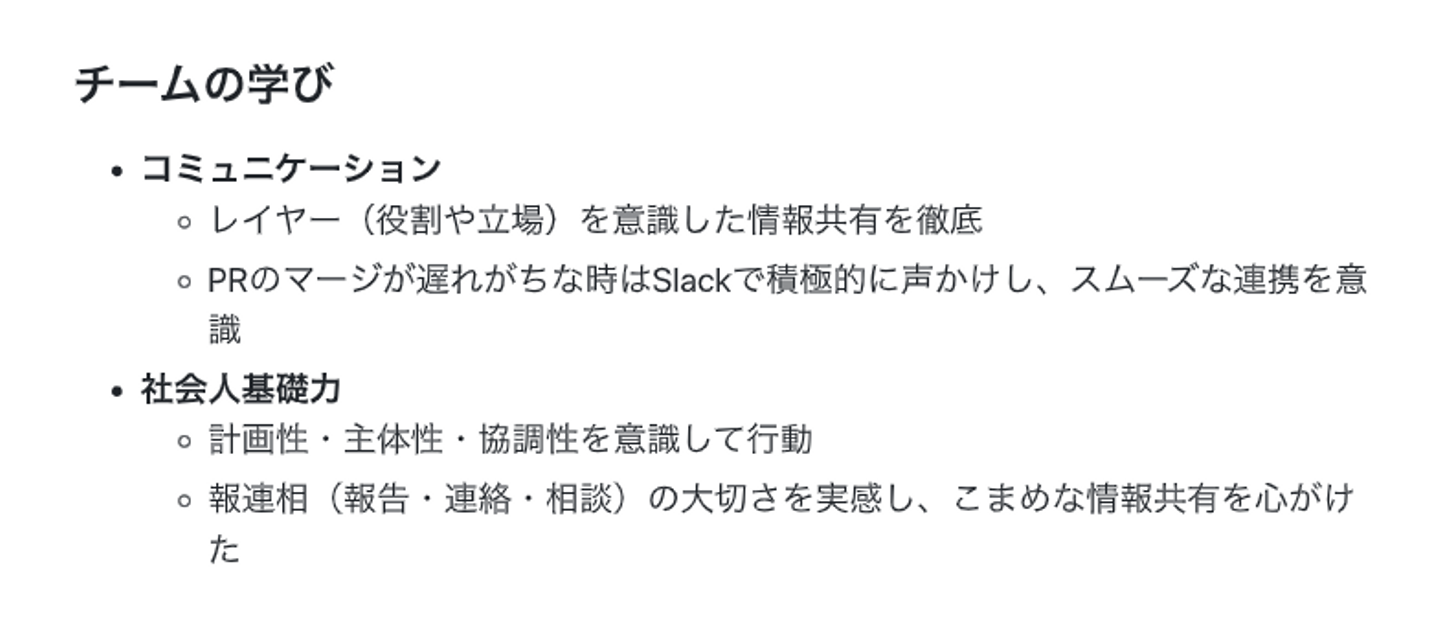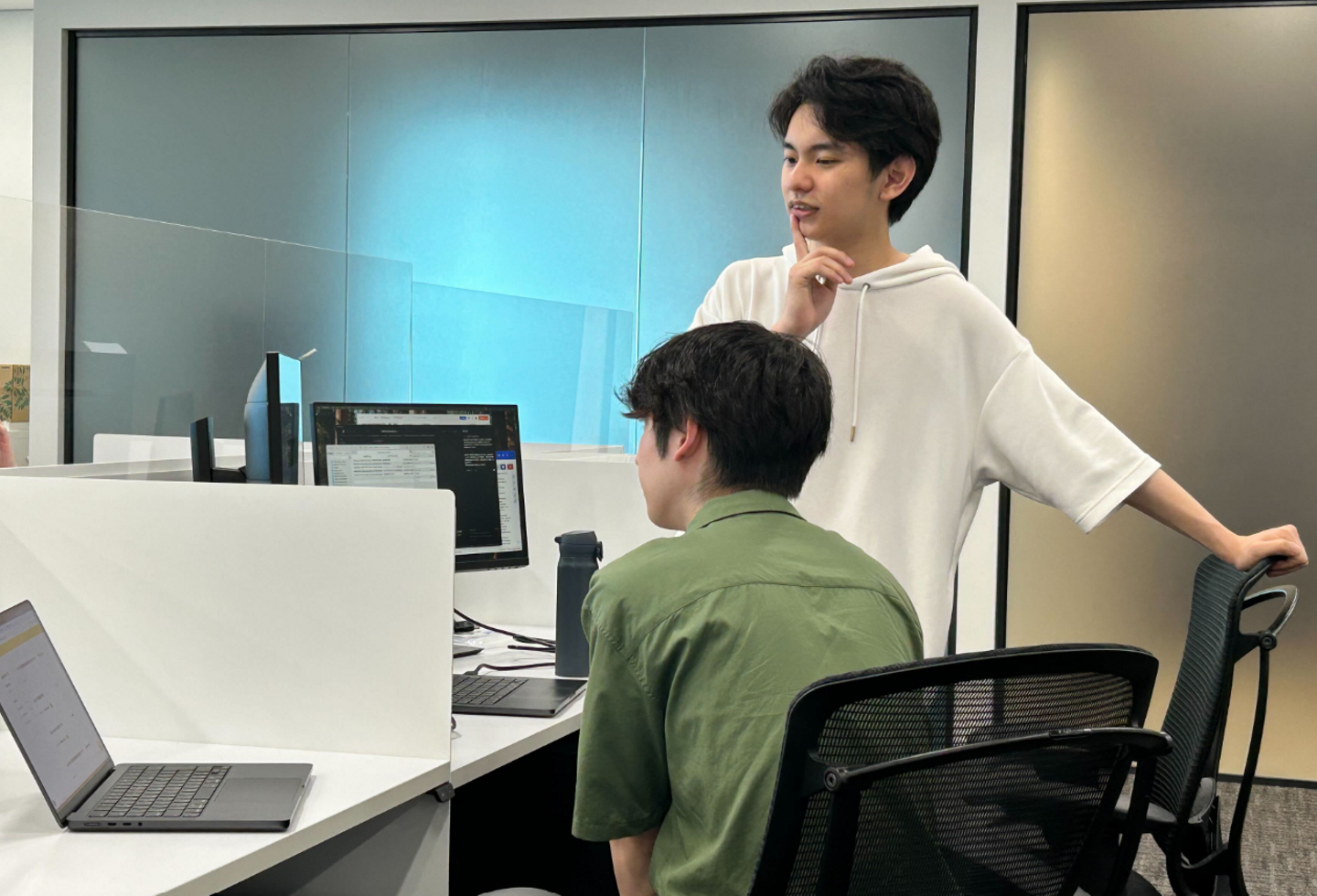 チームで連携して進めていっていて良い所も上手くいかない所も直接コミュニケーションを取っていて良!と感じていました(近くの席で)