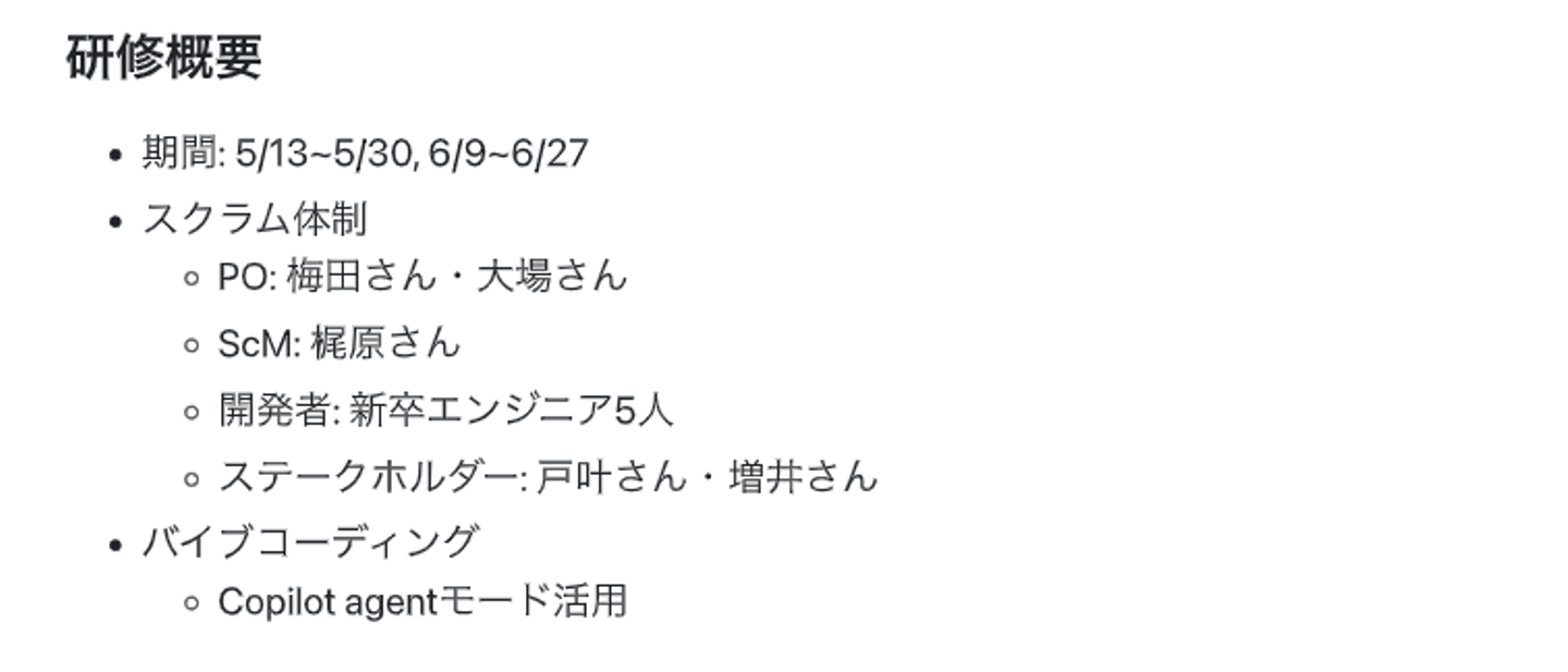 概要はこんな感じ・・・スクラム体制の研修です🙌