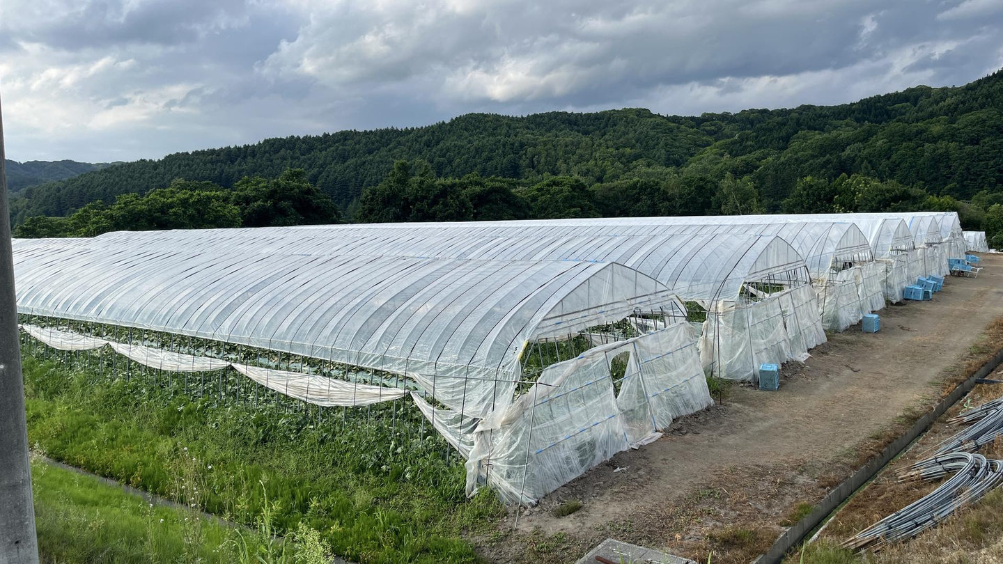 メロン畑はビニルハウスになっていて、日中、気温は40度以上(肌感)。