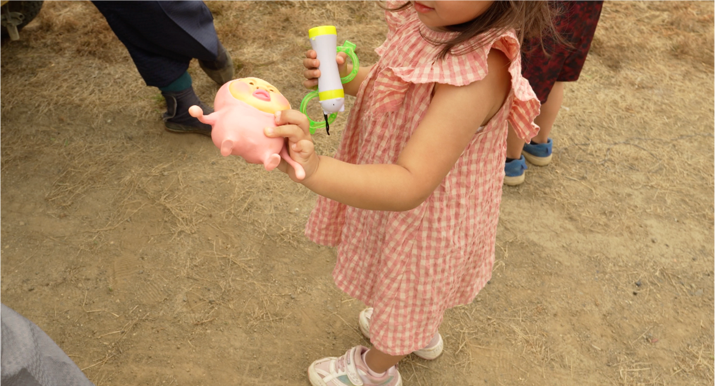 お子さんたちに、カクレモモジリ人形を渡すと、ずっとお尻を愛でていました。すっかりコビトの虜です。