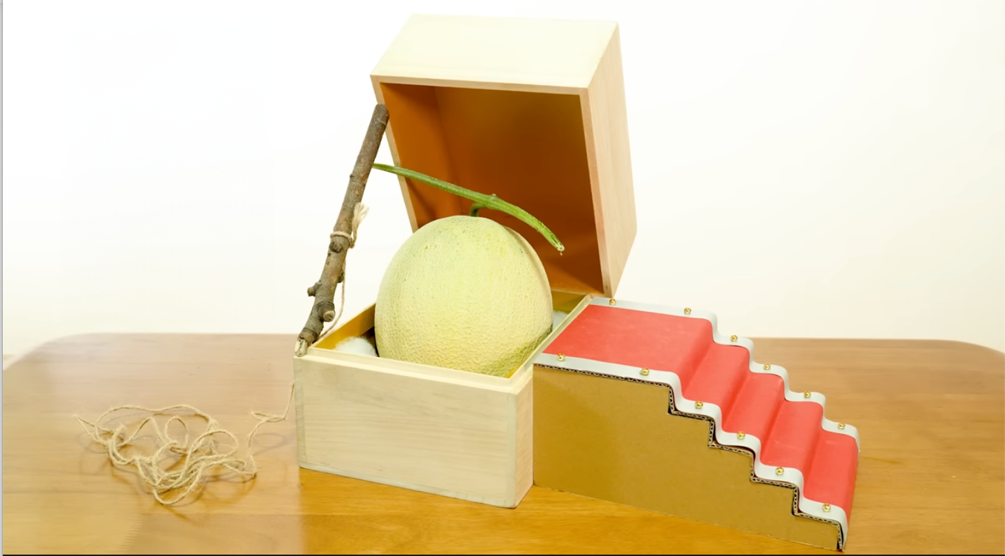 夕張メロンで誘って、ハコに入ったところでフタを閉じ、捕獲する 作戦です。