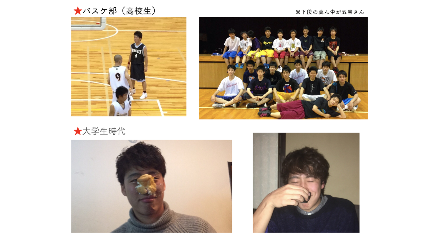 五宝:バスケ部に所属していました!坊主にハチマキをして練習してましたね!