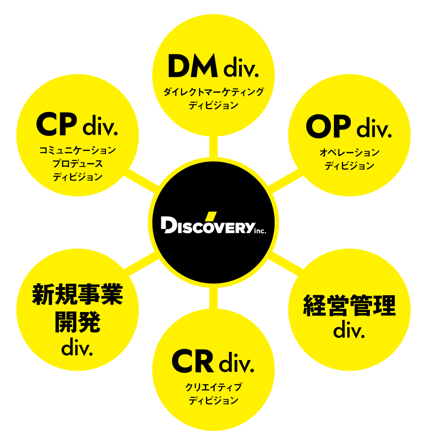 今ディスカバリーには150名以上の社員がいて、6つのdiv.(ディビジョン)に分かれて仕事をしています。