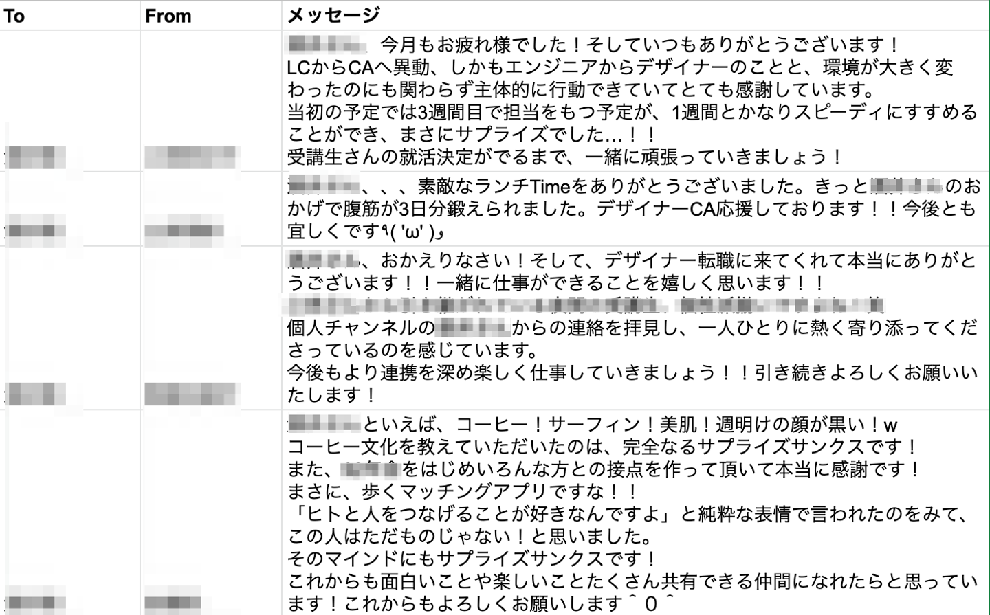 「サプライズサンクス」とは、1ヶ月一緒に頑張った仲間に対して伝える、「感謝のメッセージ」です。