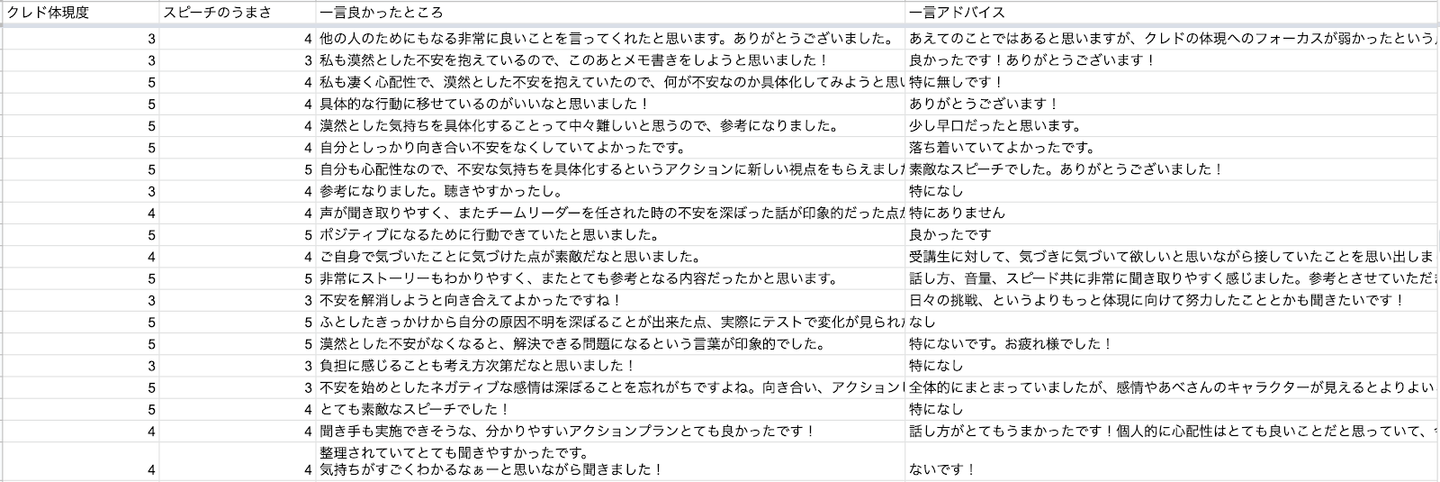 (スピーチ後には、クオリティの高いスピーチができていたかどうか、聞き手からの評価で確認することができます)