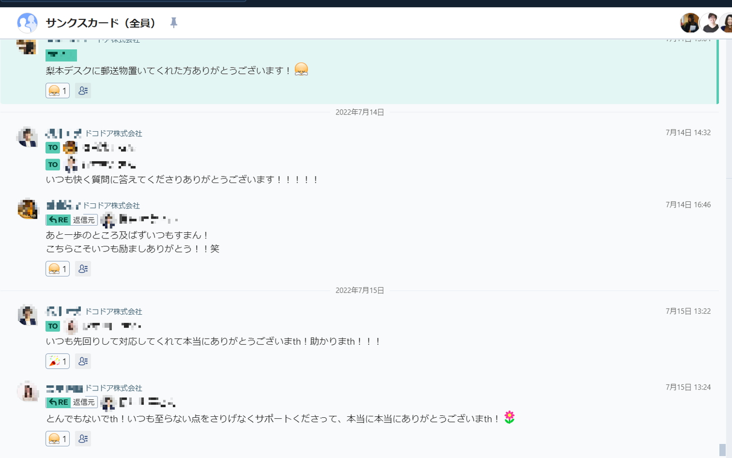 ドコドアでは「個人チャットに頼らず、案件ごと、用途ごとのチャットを作成して、そこでみんなが見える中でコミュニケーションをとる」という形を実践しています。