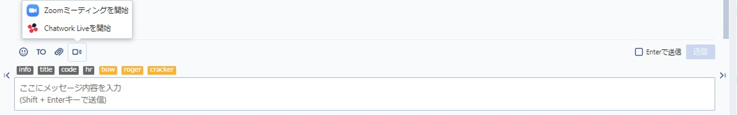 ▲チャットワークからもボタン一つでZoomのミーティングルームを立ち上げることができて楽!