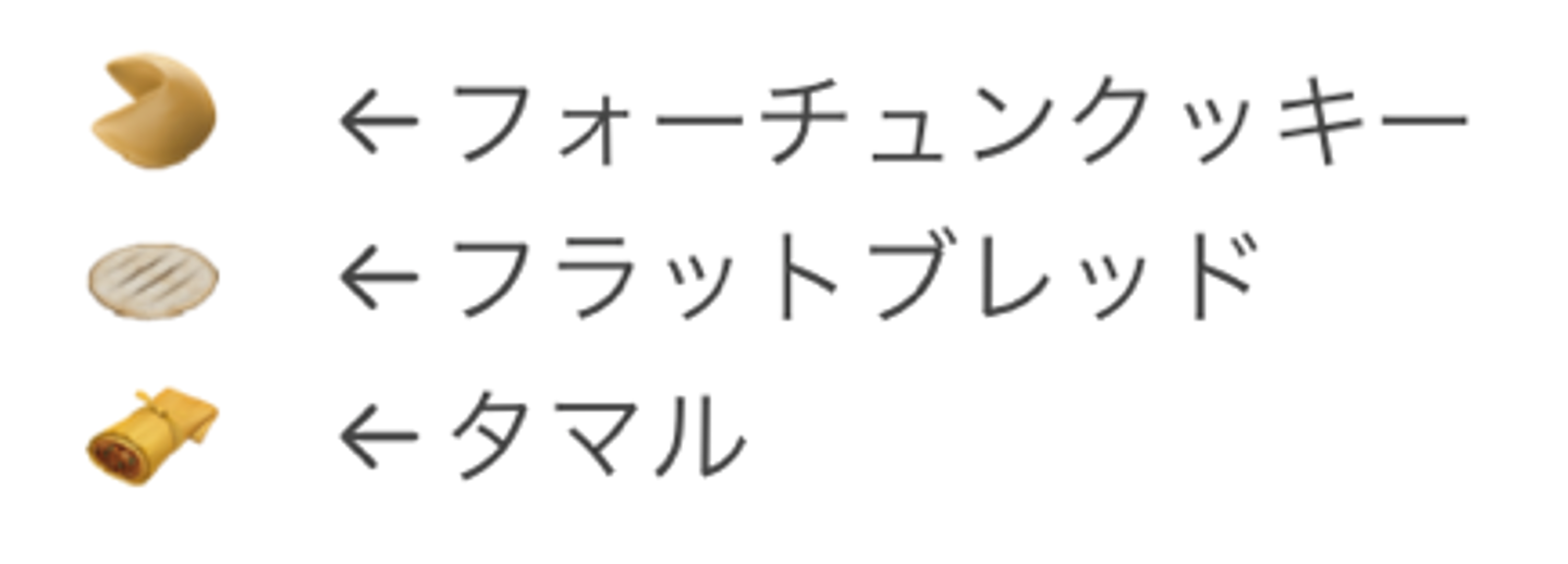 実は、iPhoneの絵文字が好きです。よく使いたくなるのは、イギリスの兵隊さんとティッシュで鼻をかんでいる絵文字です。「食べ物と飲み物」のカテゴリーにある、フォーチュンクッキーとフラットブレッド、タマルが調べるまで何か分からないところも好きです。よ〜く見るとすごく細かいな〜と思って色々使ってみたくなります(笑)