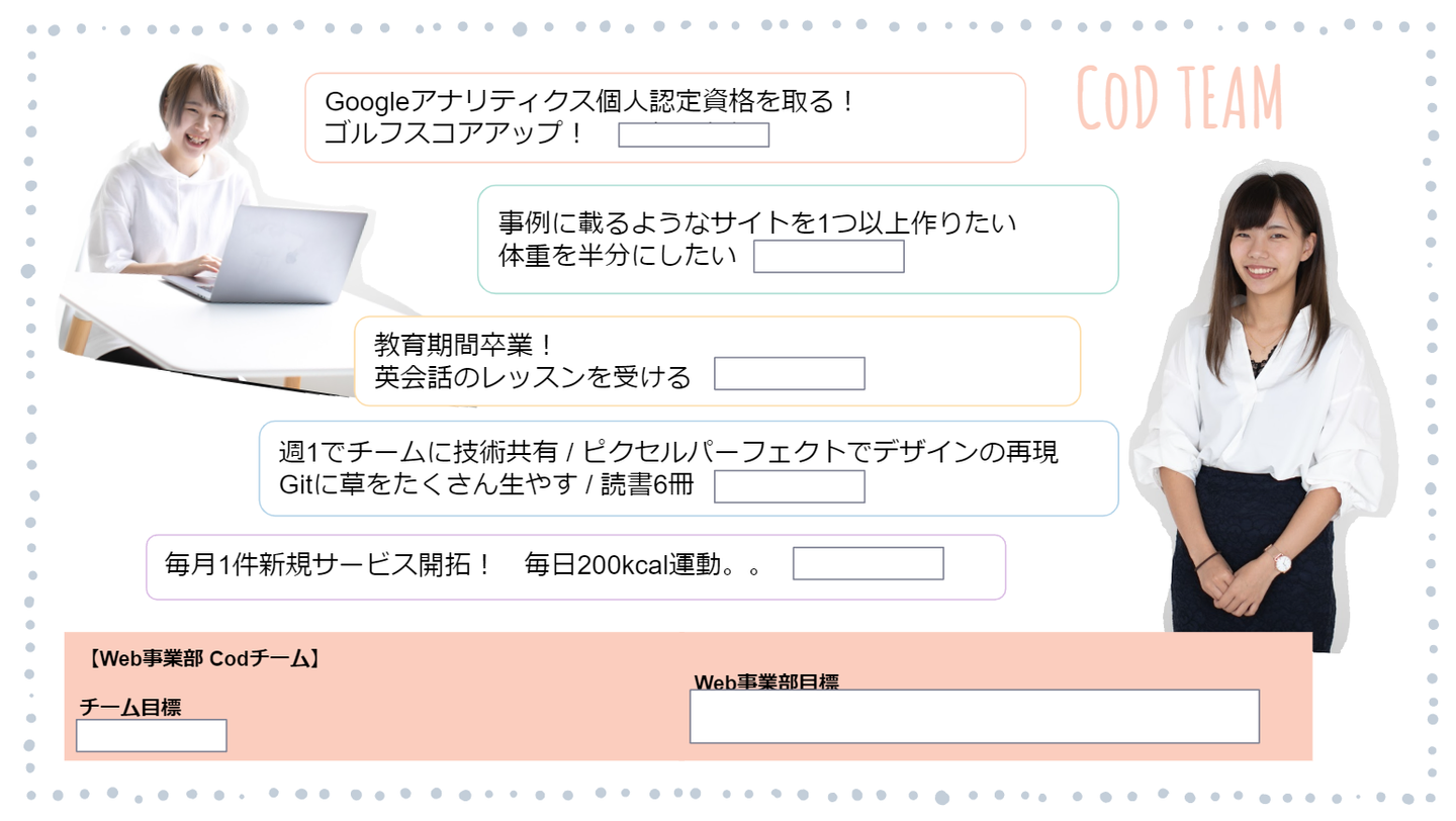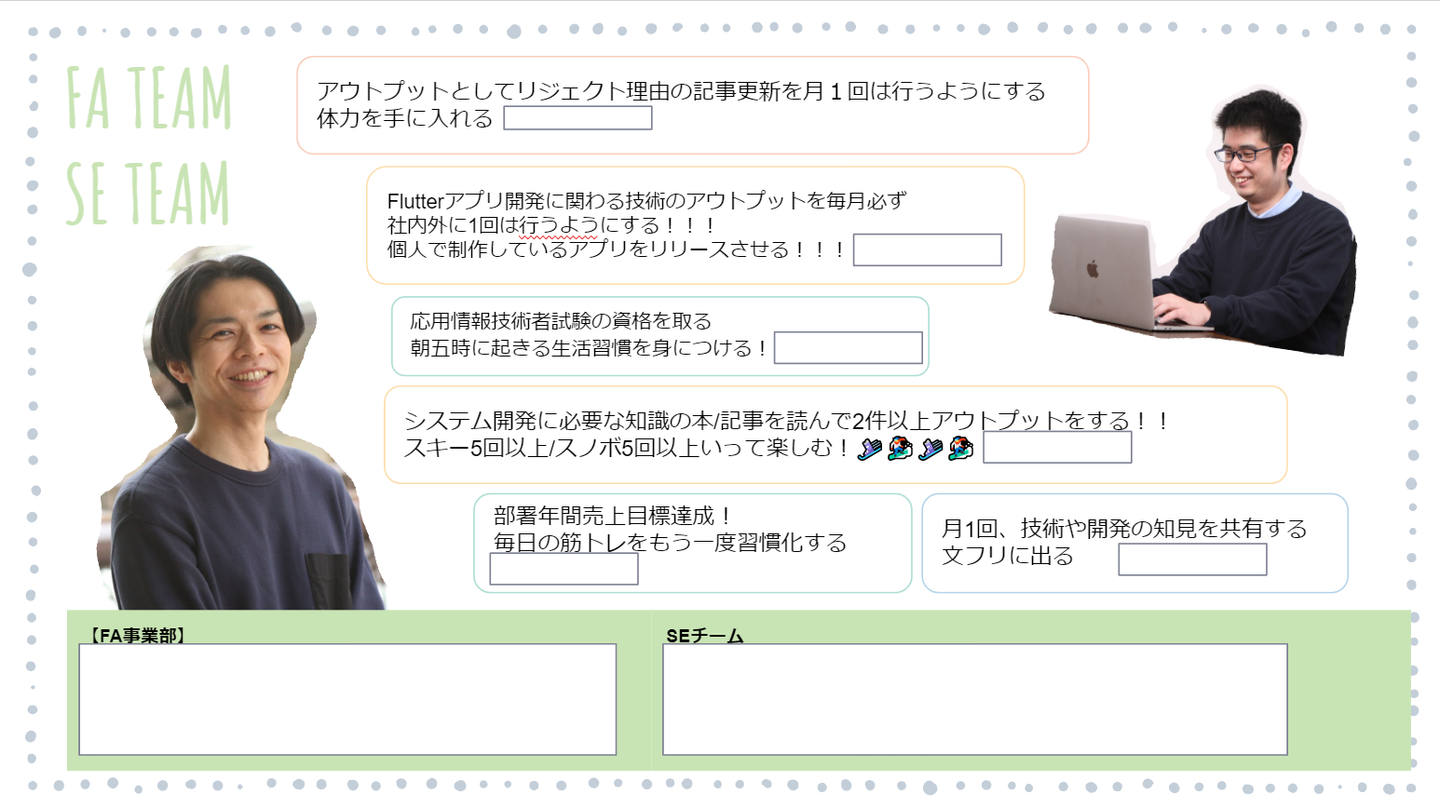 このようにひとりひとりが2023年のドコドアでの目標と個人目標を発表しあいました。
