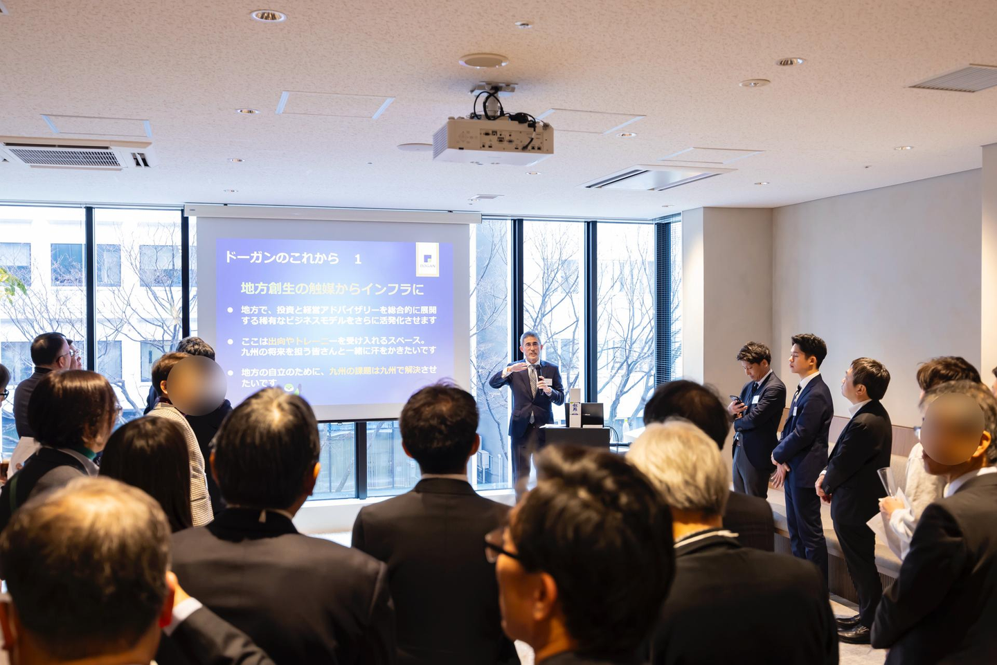 こちらは代表の森の挨拶の様子です!これまでの20年間のドーガンの歩みと、これから目指すべき地方創生のインフラとしてのドーガンの在り方や提供価値について熱く語らせて頂きました!