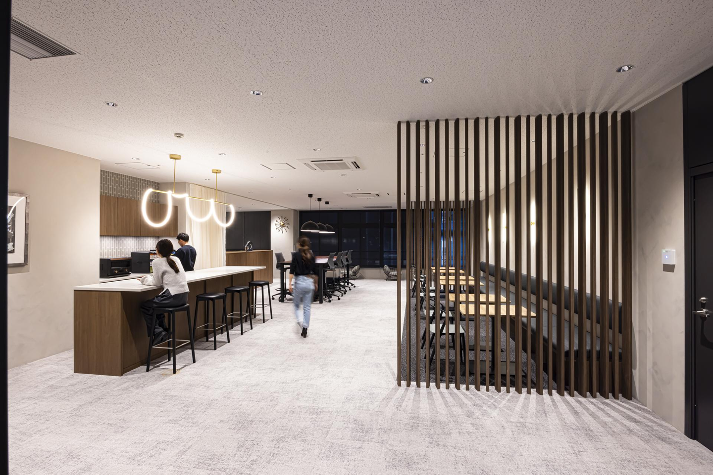 まずはこちらが新オフィス!共用部にはコーヒーメーカーやカウンターがあり、社員同士のコミュニケーションが弾む設計になっています!