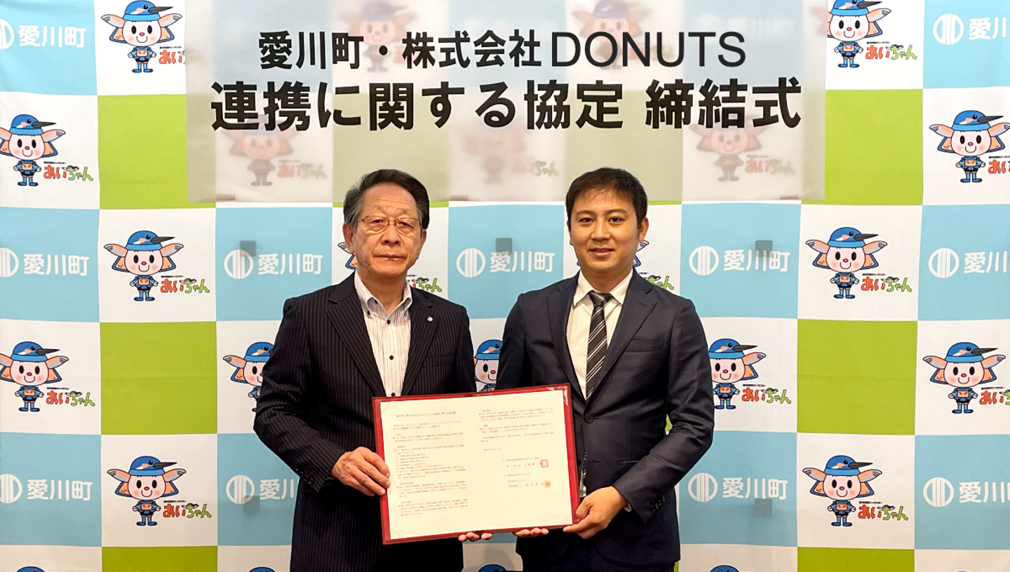 (写真左より 愛川町 小野澤町長、DONUTS 執行役員 石山)
