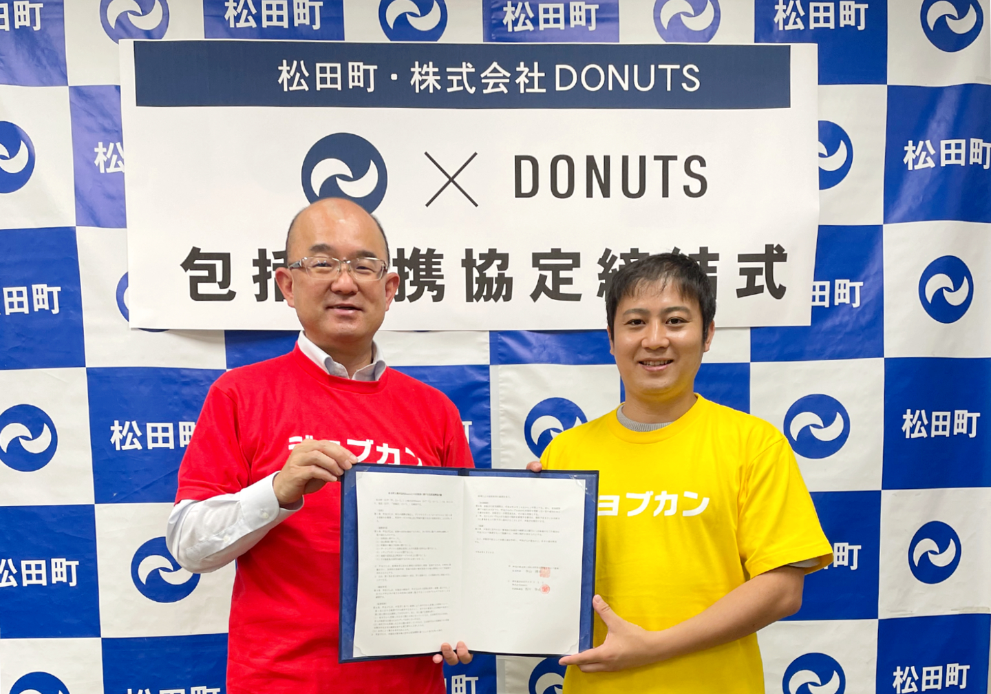 (写真左より 松田町 本山町長、DONUTS 執行役員 石山)