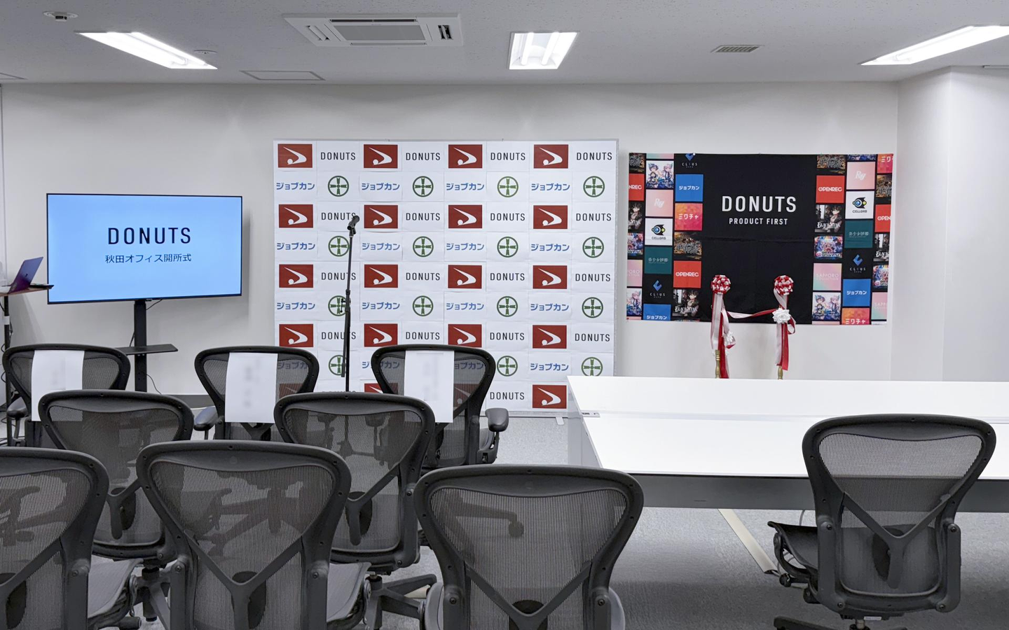 2023年9月、DONUTSは秋田県・秋田市と企業立地協定を締結し、2024年3月に国内7箇所目となる秋田オフィスを設立しました。秋田オフィスは、本社・札幌オフィスに続くプロダクト開発の第3の拠点として、バックオフィス支援クラウドERPシステム「ジョブカン」シリーズをはじめとした、DONUTSのプロダクト開発の重要な拠点に位置づけられています。2025年1月には新オフィスが稼働開始し、秋田市長をお招きして開所式が行われました。