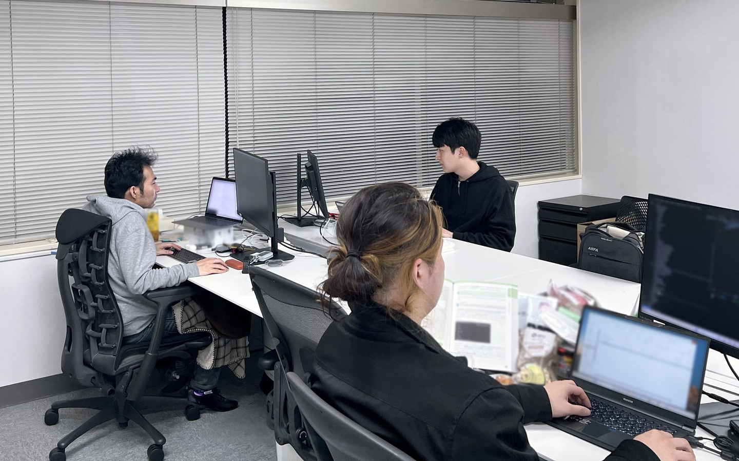 2024年3月の設立以降、シェアオフィスで業務を行っていましたが、2025年1月に新オフィスに移転しました。私自身も新オフィス移転後に赴任し、オフィス長・リードエンジニア・学生インターンと少数精鋭で、和やかな雰囲気で業務をしています。