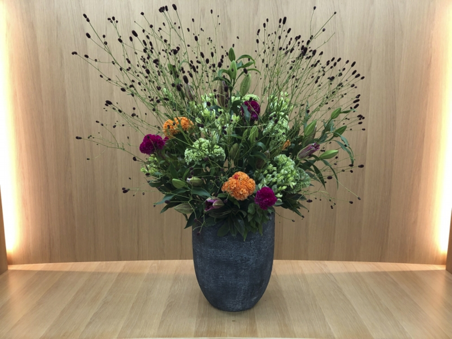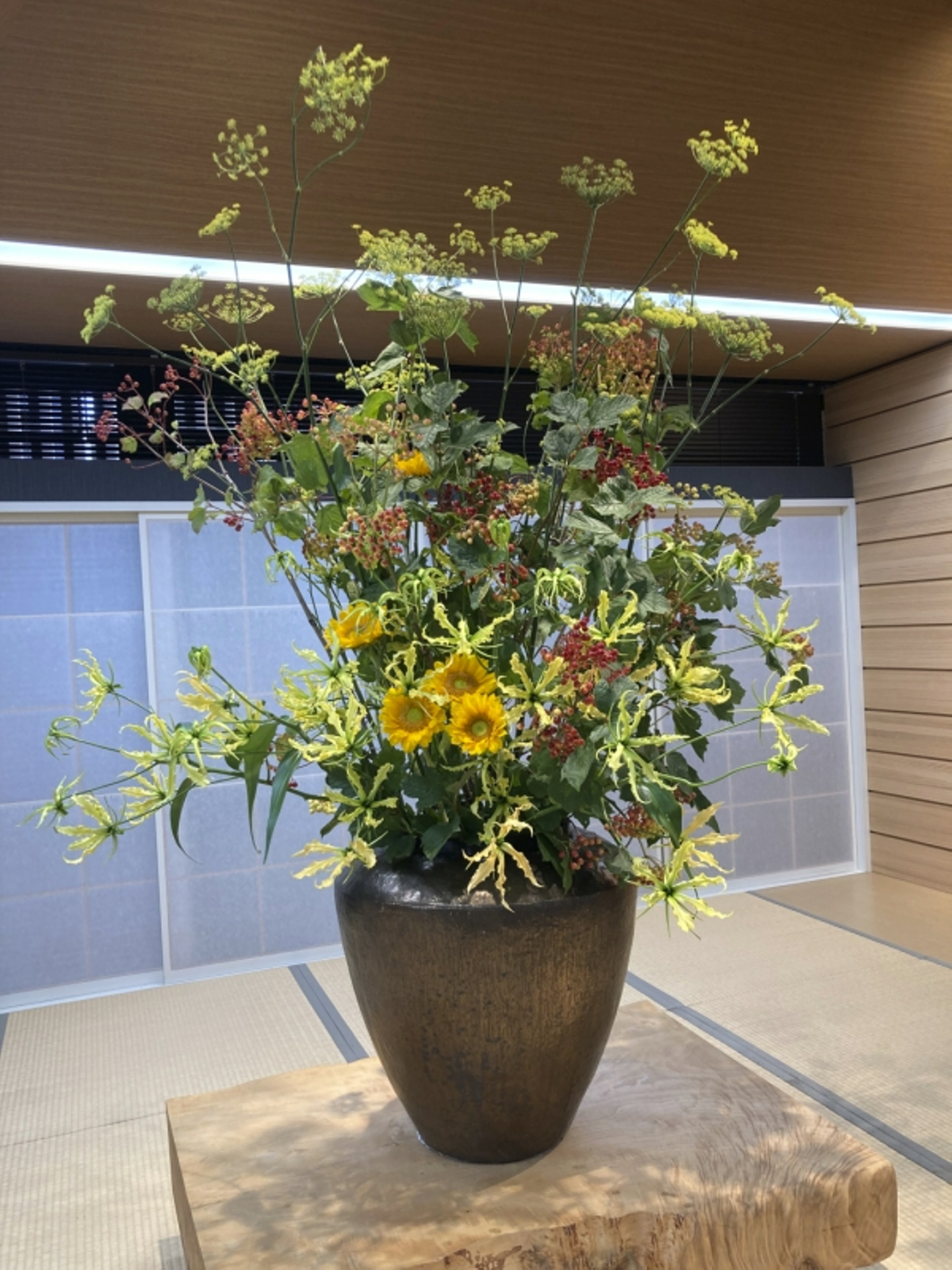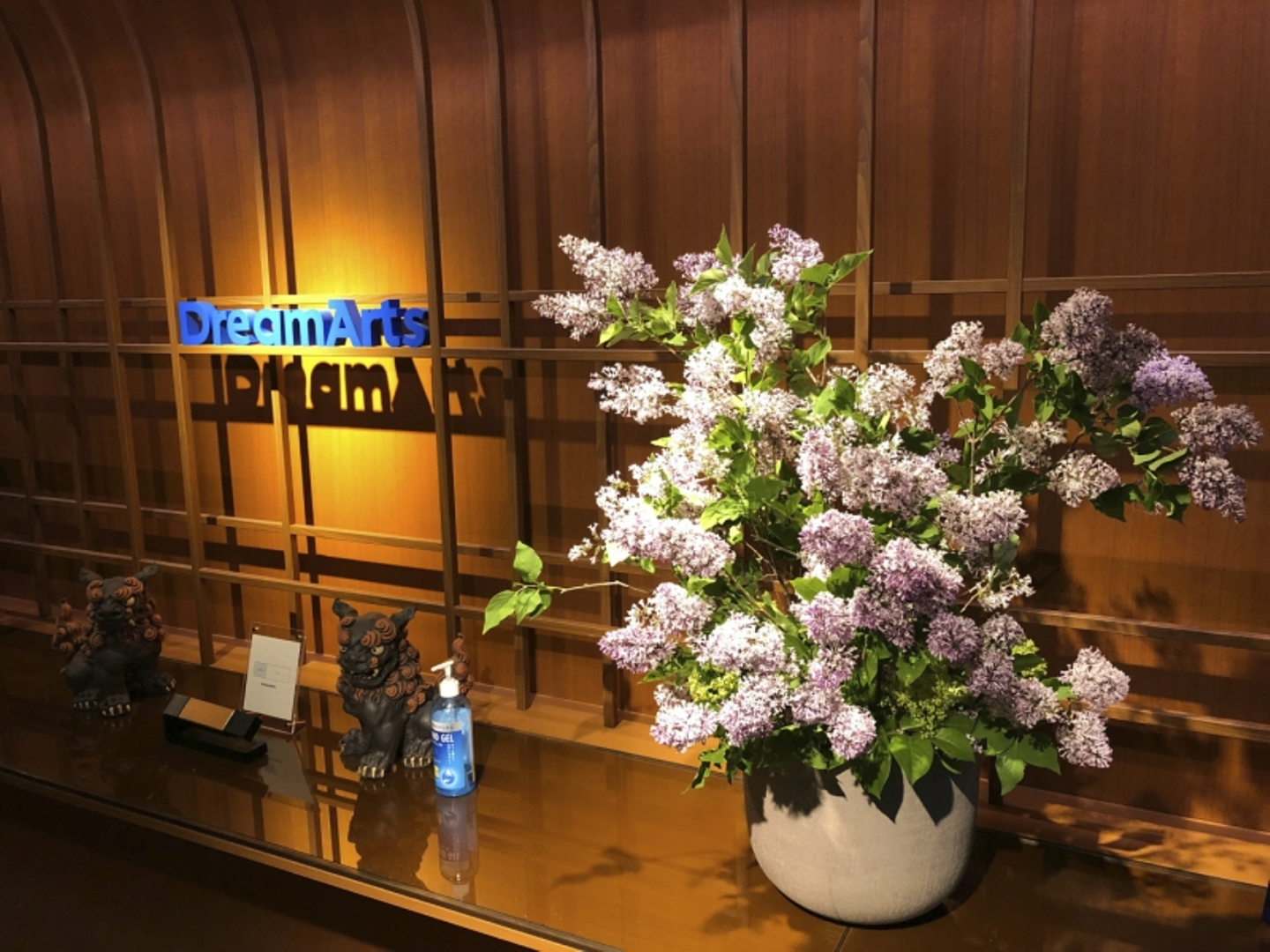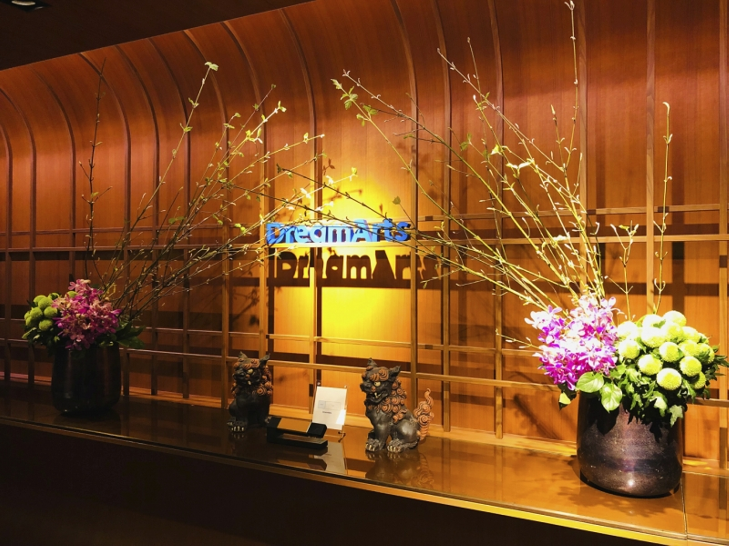 ドリーム・アーツではお客さんをお迎えする気持ちとして、またオフィス内に植物があることでパワーが生まれることから、以前よりお花を飾る文化があります。