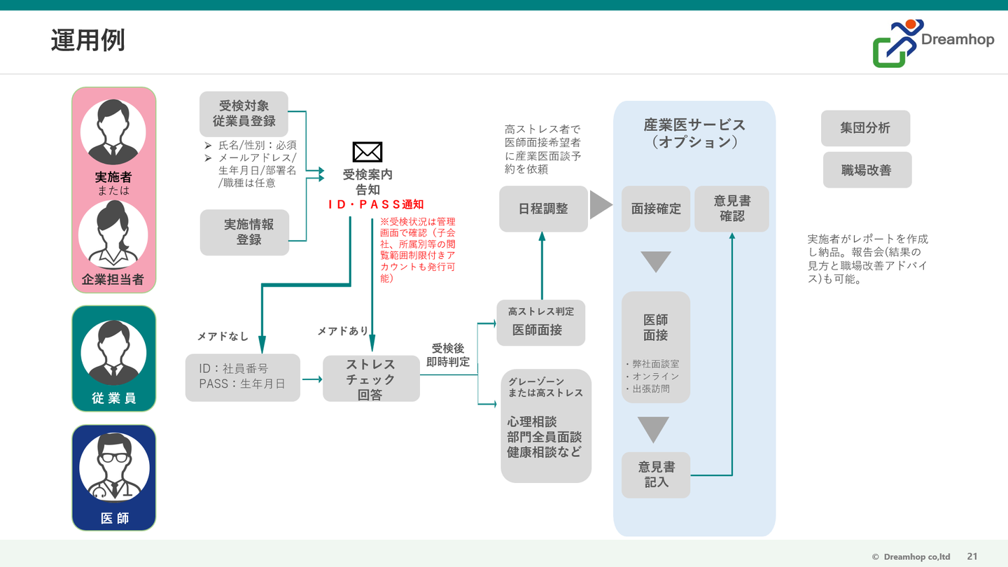 - 産業医機能を連携し、ストレスチェック受検から医師面接までをWeb上で完結