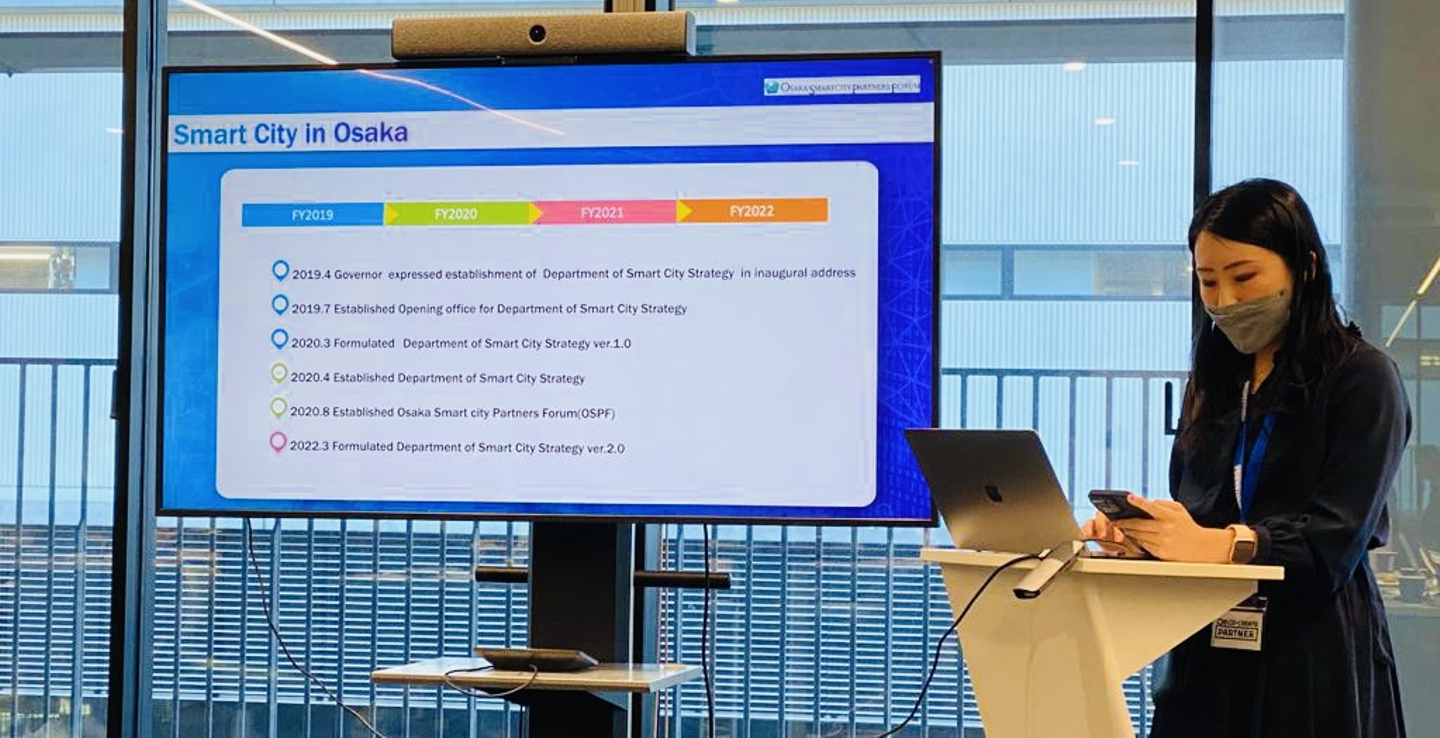 まず始めに、大阪府から、2025年大阪・関西万博に向けた“大阪モデル”のスマートシティ実現に向けた戦略や取組についてのプレゼンテーション。
