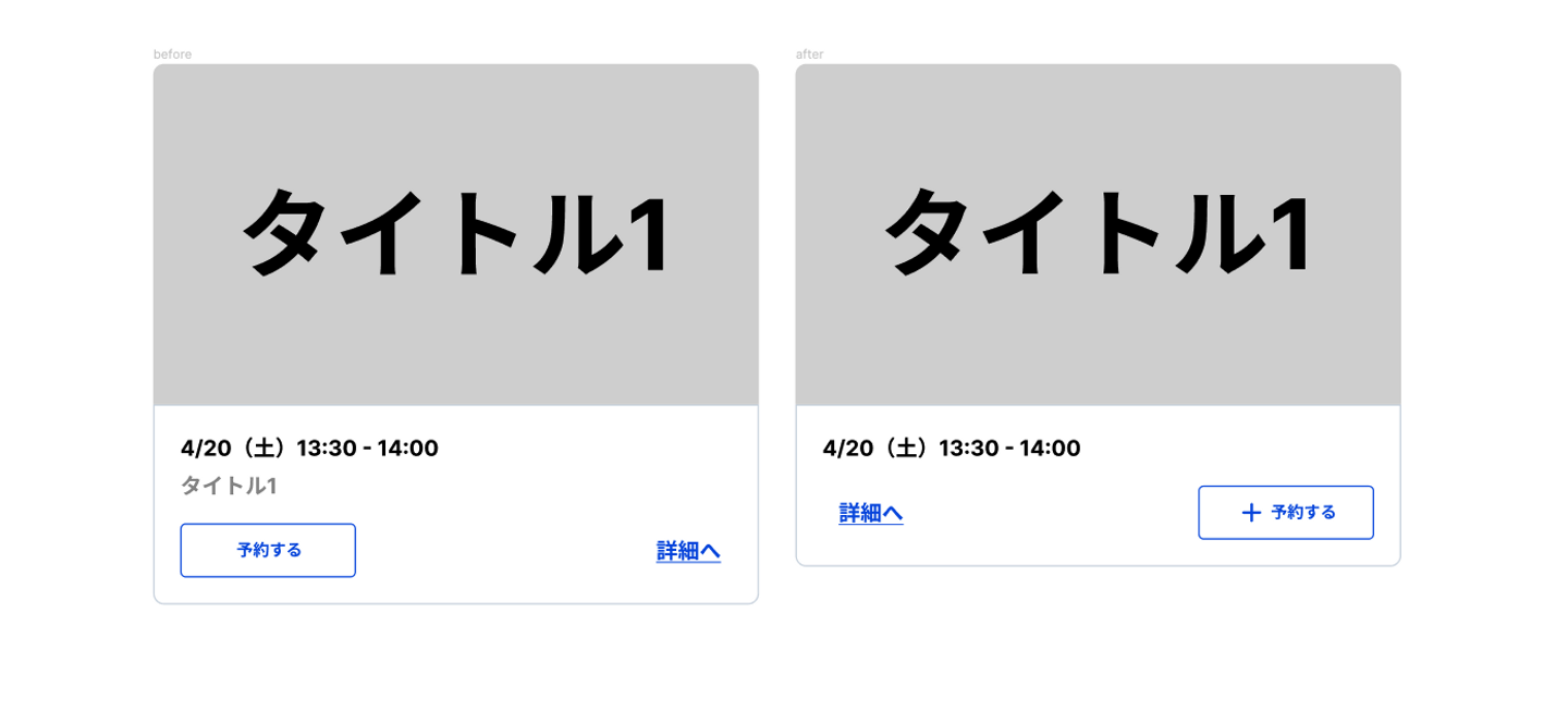 そうですね、サムネイルにタイトルがあるのに同じ要素内に別でタイトルをつけ強調していたり、「視聴する」ボタンがPrimaryで表示されてたりなど、重複している情報があって、そこがユーザーにとって見づらいところもあって、そこを改善をしたところだよね。
