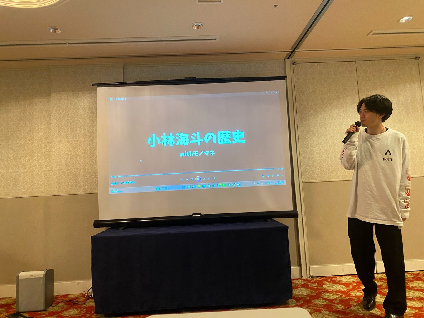 みんなで中華料理を食べながら歓談を…、そして私は用意しておいた自己紹介動画を披露しました。