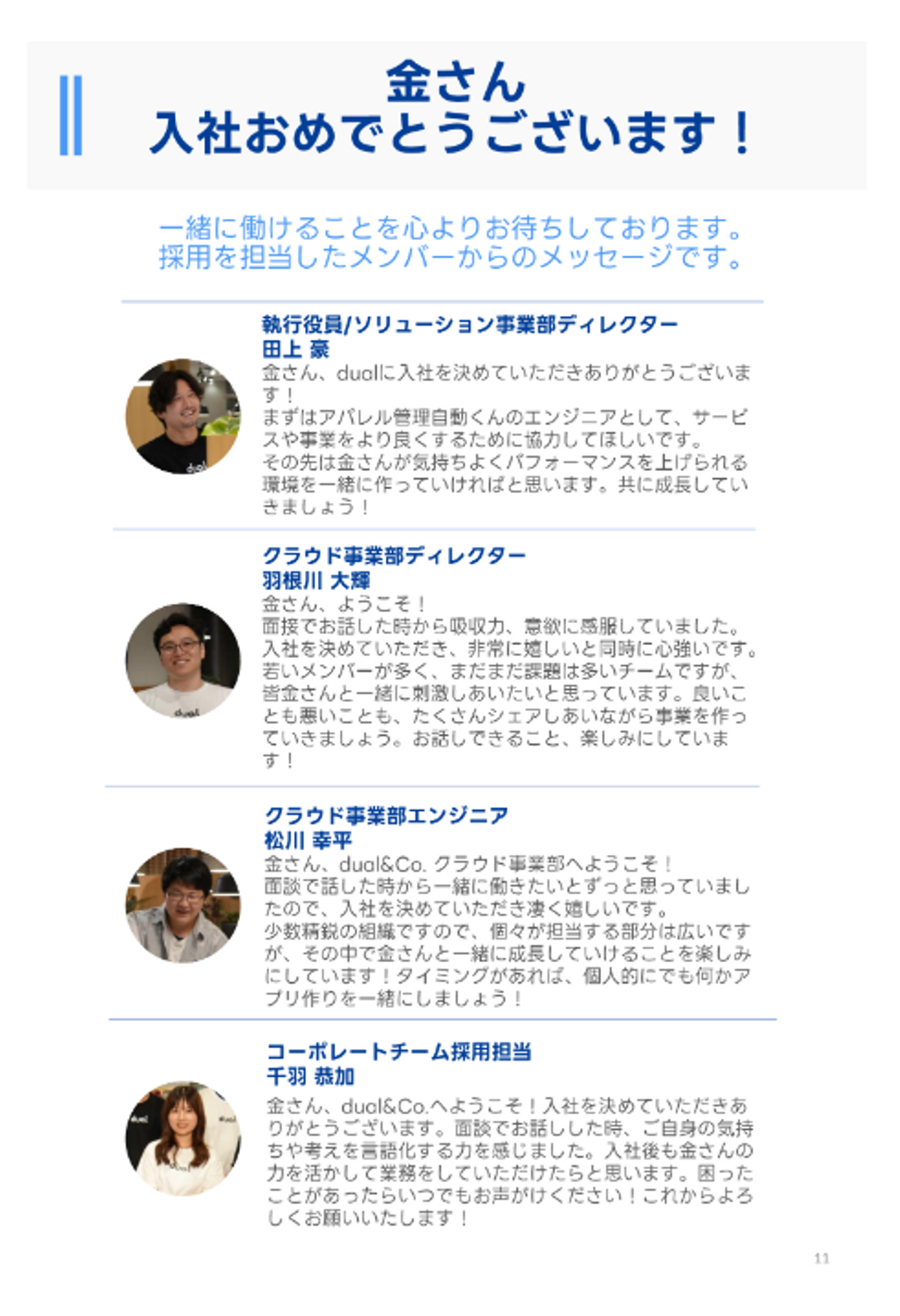 ãŸããåœç€Ÿã®æ¡çšã¯äžç·ã«åãã¡ã³ããŒãåå ããŠããã®ã§ãéžèã«é¢ãã£ã瀟å¡ããã®ã¡ãã»ãŒãžãã€ããæè¿ããŠããæ°æã¡ããäŒãããŸããã