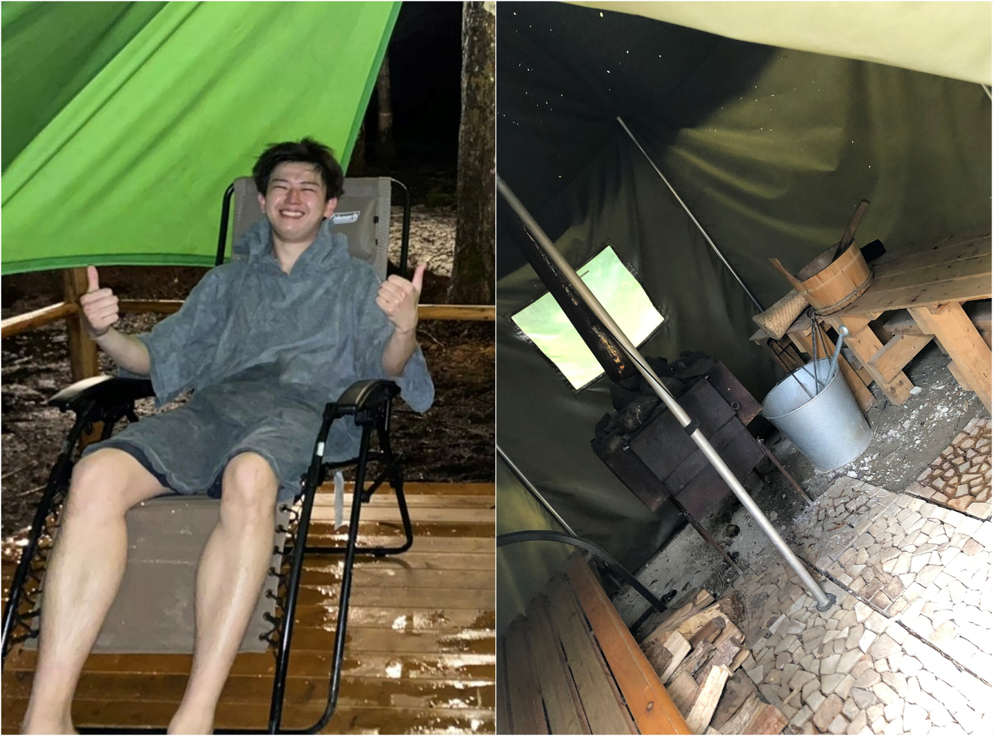サウナでの一枚。マニアックな設備と爽快な笑顔に、ととのい具合が伝わってきます!
