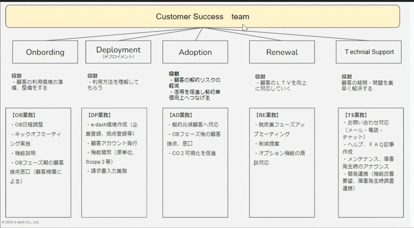 自分自身はもちろん、今後はリーダーとして、チームをより良い組織にしていきたいと考えています。SaaS企業においてCSの役割は非常に重要だと感じているため、「脱炭素のサービスで、e-dashのCSがNo.1」と評価されるような、サポート面でお客様に価値を実感していただける存在を目指しています。また、自分自身のキャリアにおいても、CSとしてデータドリブンなアプローチに寄り添えるスキルを磨き、事業の成長に大きく貢献していきたいと考えています。