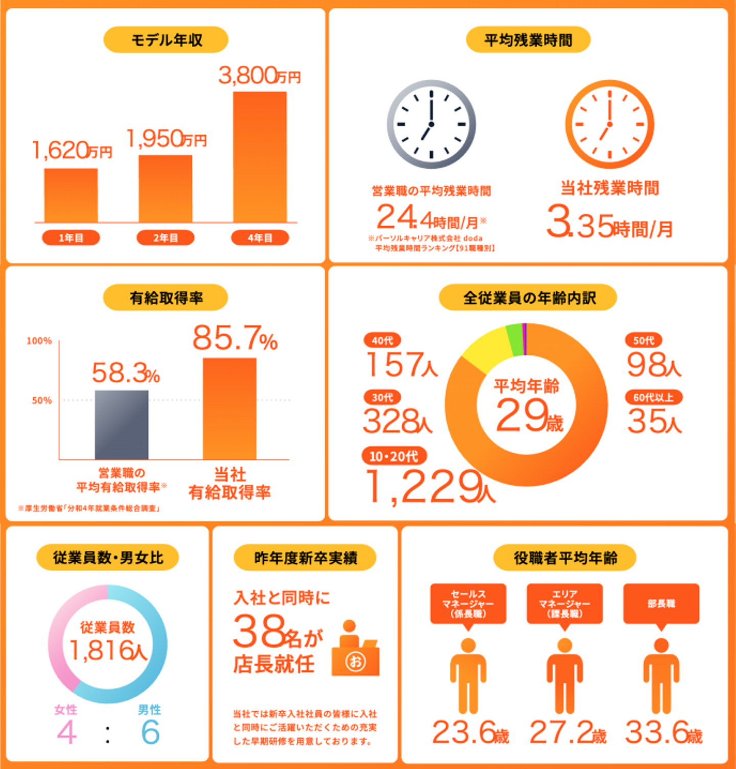 さらに、優秀な成績を収めた方には、入社と同時に店長の役職を与えられ、若いうちからマネジメントにも挑戦できる環境が整っています。