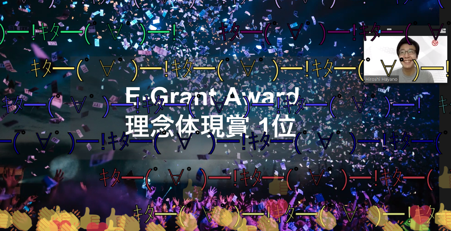 E-Grantでは成果指標のMVP・準MVP・MVT等の一般的な表彰の他に、理念体現賞というこの半期で一番EGの理念を体現した人を全社員の投票で決めるプログラムもあります。