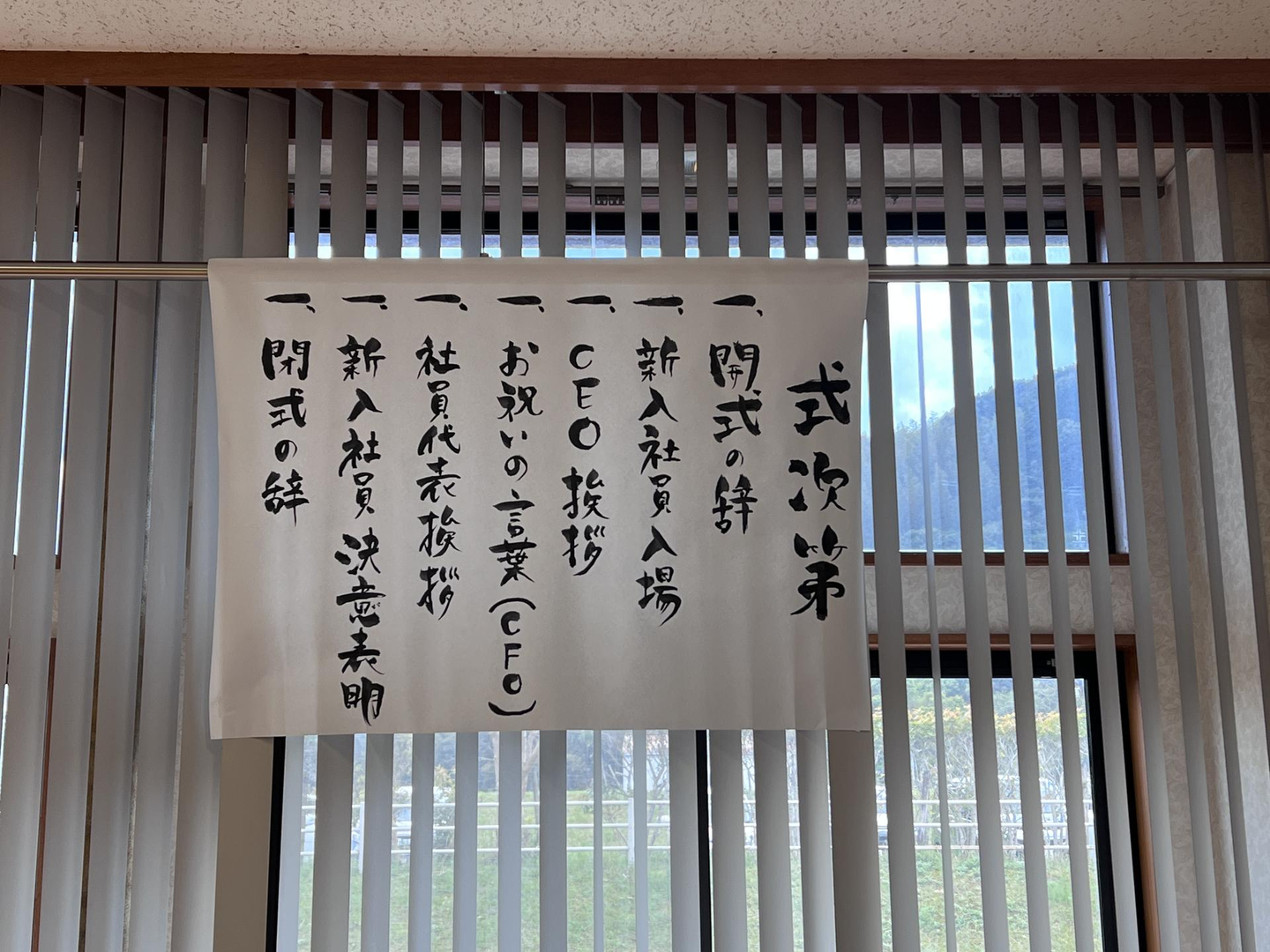 ちなみに当日の式次第や黒板文字は、人事総務部の先輩、柳井田さんに書いていただきました。