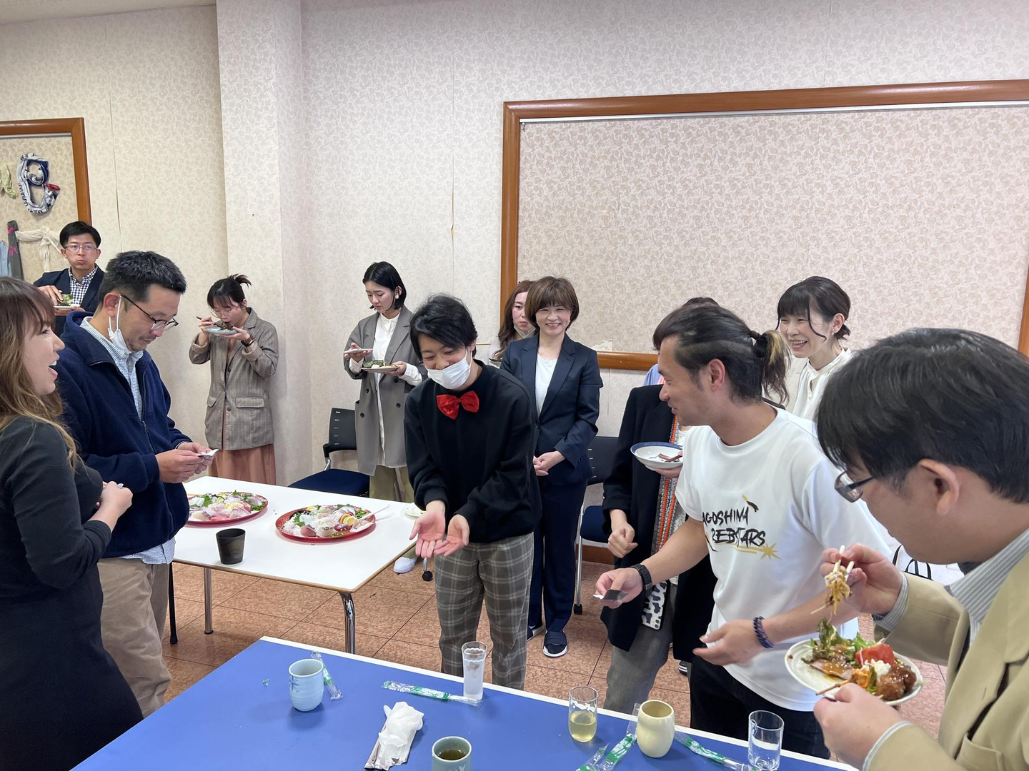 せっかくなので、お昼もみんなでワイワイしよう!ということで、今年はランチパーティーも開催しました。実はこの手巻き寿司のお魚は、当初釣りが趣味の川野社長が釣ったお魚で手巻き寿司をする予定だったのですが、お魚の鮮度の関係で社長の近所の漁場から新鮮なお魚を手配していただきました。