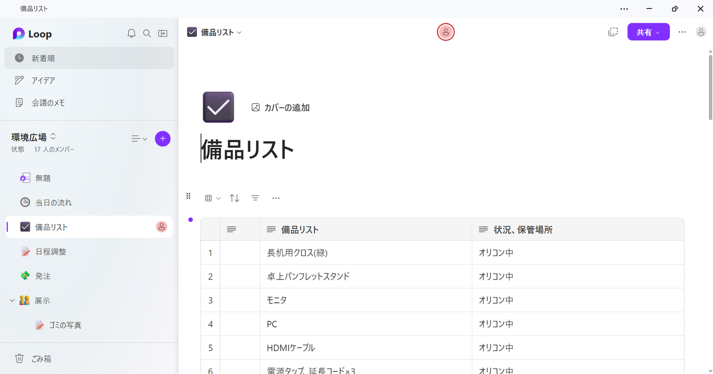 リーダーの佐川さんのご提案で、情報共有にマイクロソフトのLOOPを使用しました。