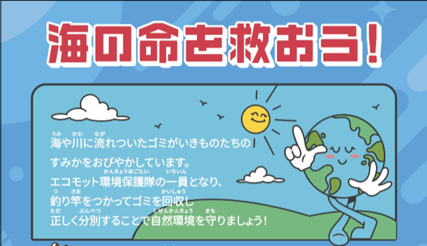 "エコモット環境保護隊の一員となって、海洋ゴミを拾って分別し、海の命を救おう”というテーマの