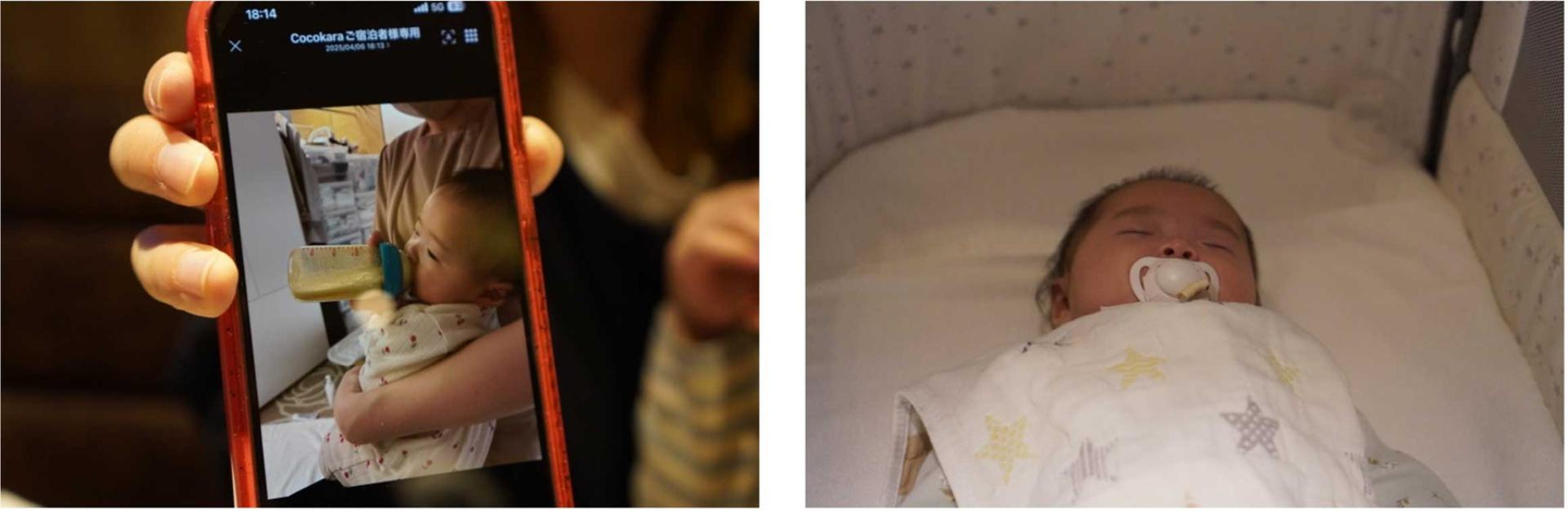 「これまで一度も赤ちゃんを預けたことがなかったので不安でしたが、授乳や睡眠の様子を写真付きで細かく報告してくれるので、安心して過ごすことができました。授乳の報告後には念願だった大好きな居酒屋のお酒を久しぶりに楽しむことができ、良いリフレッシュになりました。」