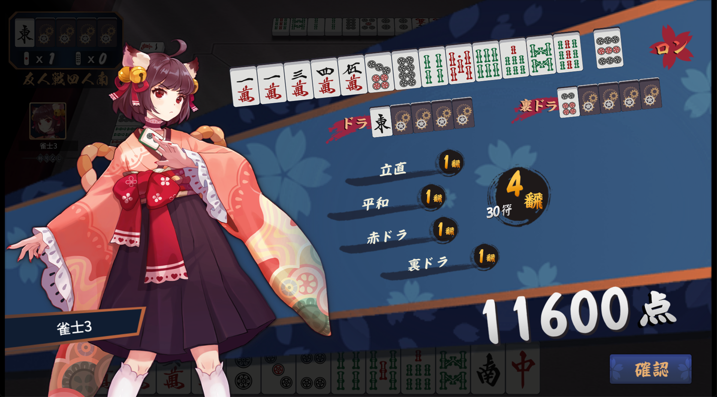 社長選手が11600点、7800点と連続でアガリ、親番で粘りを見せます!