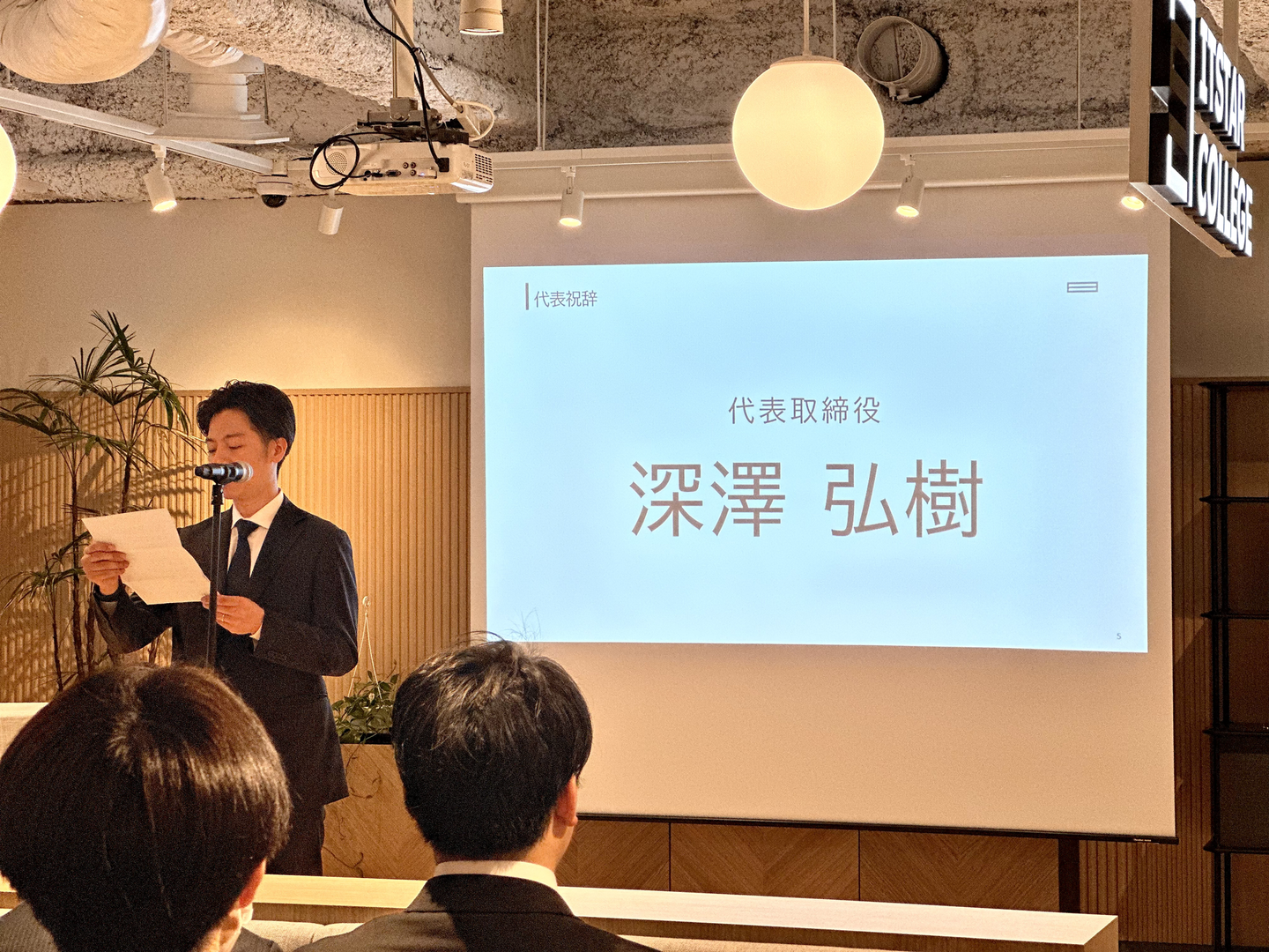 まずは、代表の深澤、役員から新入社員の皆さんへお祝いの言葉が送られました。