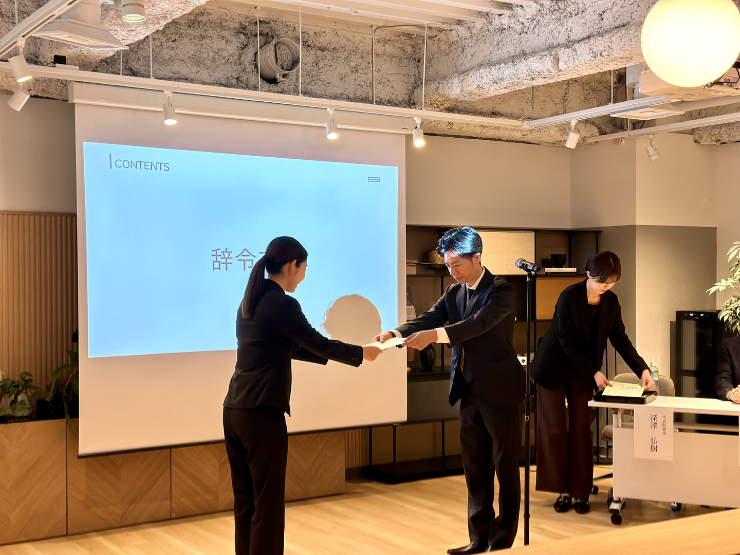 一人一人、代表の深澤から手渡しで渡されました。ここまで少し緊張の面持ちだったメンバーも、辞令を受け取る際は少し表情が柔らかくなっている印象でした。