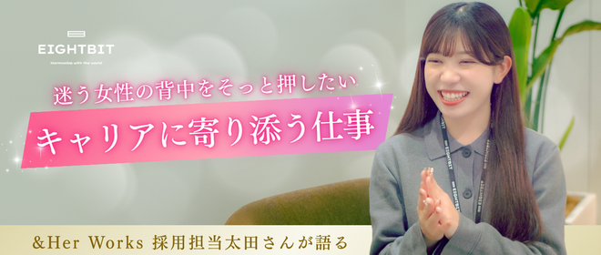 こんにちは!エイトビットの大沼です☺️今回は、&Her Works採用担当・太田麗奈さんの初インタビューをお届けします🌼キャリアに迷う瞬間。何がしたいのかわからない、これからどう働いていくべきか不安になる。そんな気持ちを抱えている女性は、実はとても多いと感じています。&Her Worksは、「女性が、自分らしく働き続けられる未来をつくる」その想いから生まれた事業です。今回は、2025年8月に入社し、現在採用担当として活躍している太田さんに、・なぜこの事業を選んだのか・どんな女性に寄り添っているのか・自身の不安をどう乗り越えたのかを伺いました。太田さんの言葉には、迷う女性の背中をそっと押す...