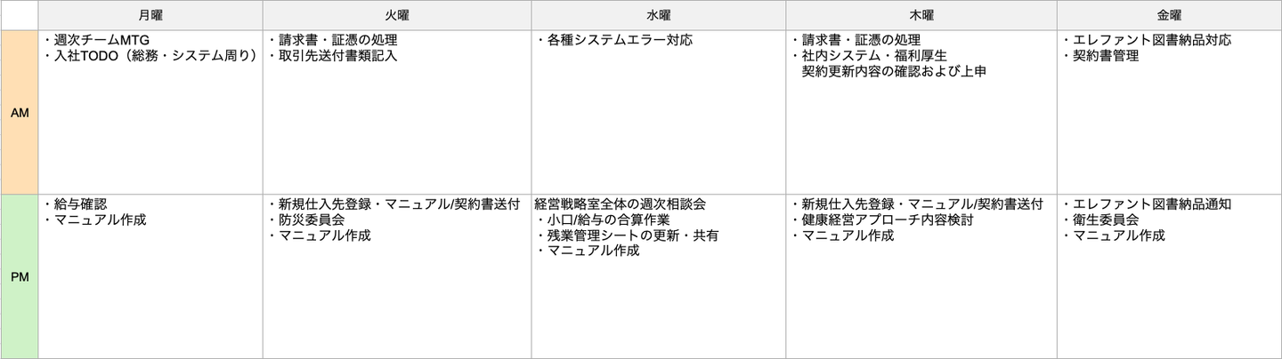 1週間の業務内容を教えてください!
